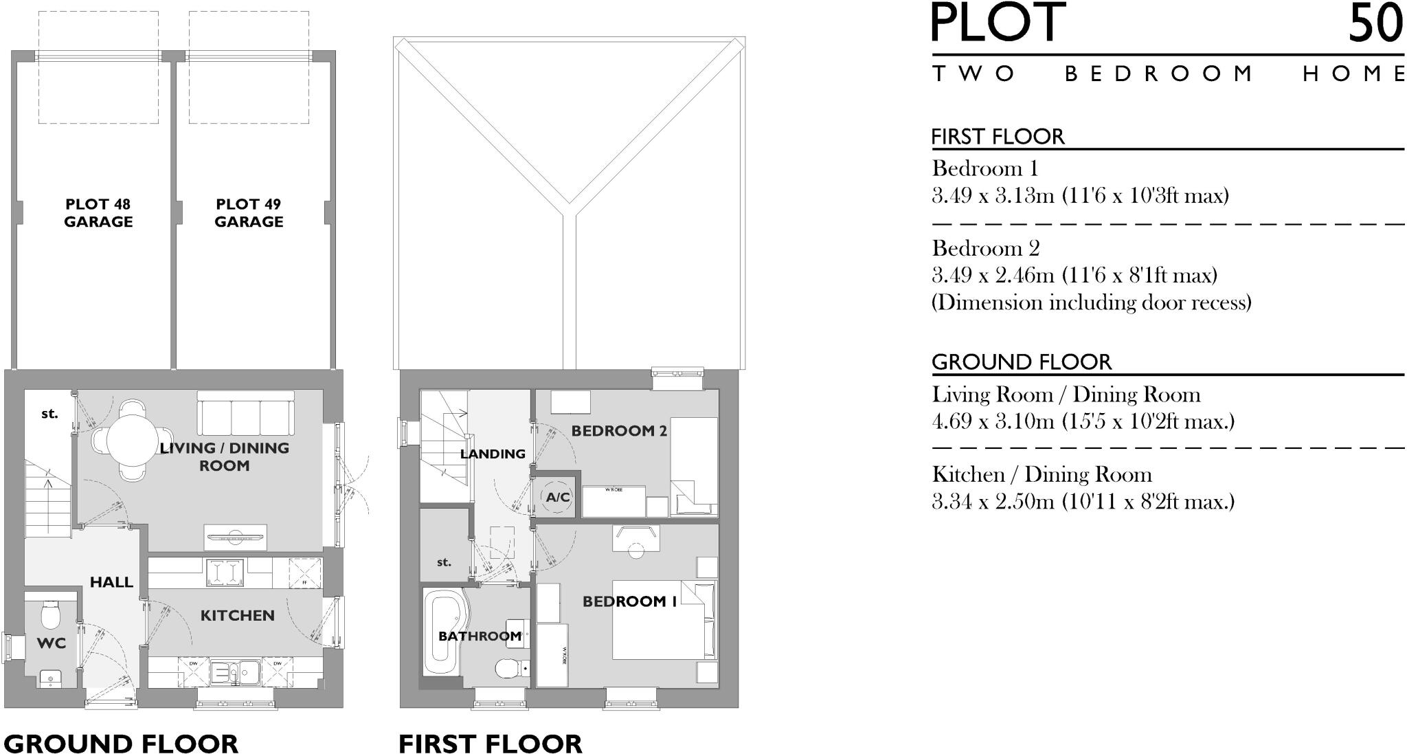 A two double bedroom detached house with family bathroom, living room / dining room , kitchen with built in appliances, garage and one parking space.
