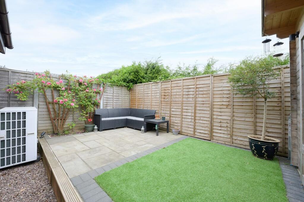The property is a 3-bedroom, 1-bathroom terraced house located in Upton Bishop, Herefordshire. Based on the provided images, the property appears to be in excellent condition, having undergone a recent modernisation. The kitchen and bathroom are newly fitted, and the property has been decorated to a high standard. There is also evidence of a recently constructed extension to the rear of the property which includes a playroom/sunroom. The property benefits from a small, enclosed rear garden, which is mainly paved with artificial grass.