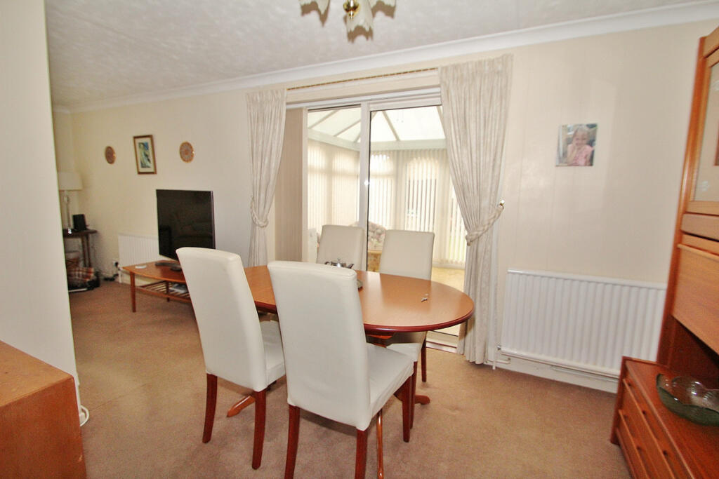 Conveniently located for access to the Town Centre amenities and offered 'For Sale' with NO ONWARD CHAIN, a 3 bedroom detached bungalow with a garage and parking. 2 reception areas, conservatory, kitchen, bathroom, separate WC. Gas (rad) C.H. Gardens
