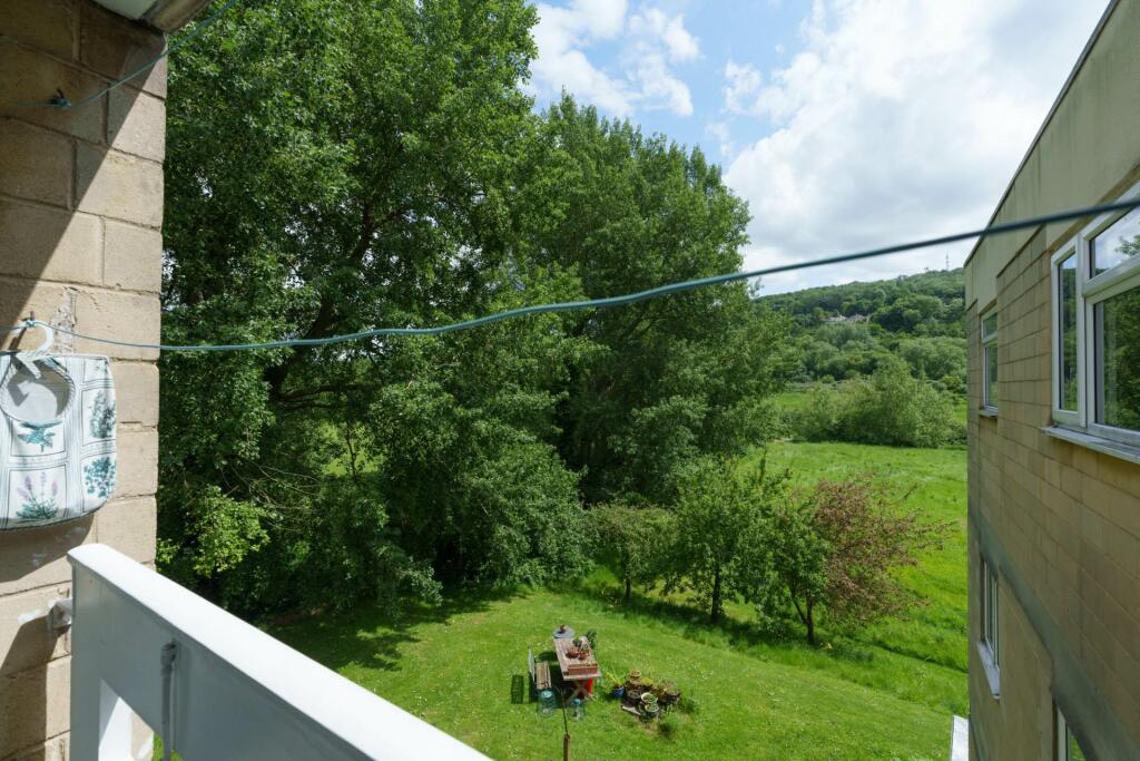 A modern upper floor two double bedroom apartment within special communal gardens leading down to riverbank in a peaceful setting close to Larkhall village. Balcony. Well presented. Garage.