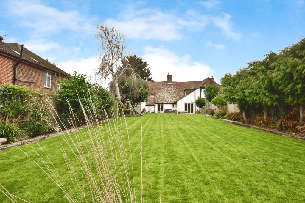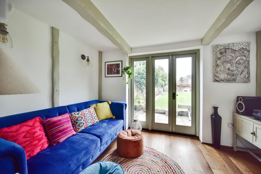 The property appears to be a period property, retaining many original features such as exposed beams and brickwork, while incorporating modern updates to the kitchen and bathrooms. The property is in good condition and well maintained. The garden is of a good size, providing ample space for outdoor activities.