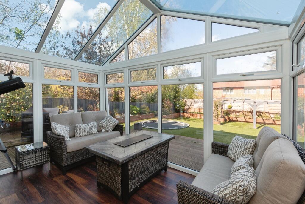This property is located in Fleet, Hampshire, a desirable area in the South East of England. The location benefits from being close to good schools, including Crookham Church of England Aided Infant School (Good Ofsted rating) and Church Crookham Junior School (Outstanding Ofsted rating), both within a short distance. Fleet train station provides convenient access to London and other major towns. The property itself appears well-maintained and modern from the provided images. It features a substantial garden with a patio and decking area, adding to its appeal. While the square footage is not provided, the list price of £1,000,000 seems high when compared to the average price of £521,197 in the area. However, considering the apparent modern condition, the larger garden, and the location, it may be justified, but further information on the property size would be needed for a definitive assessment. The property appears to have undergone some modernisation, retaining some traditional characteristics.