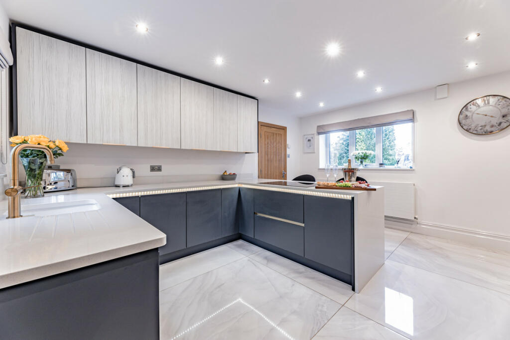 This four-bedroom, three-bathroom detached property in Hazel Grove, Stockport offers a compelling blend of modern luxury and tranquil semi-rural living. The property has clearly undergone significant renovations or a complete refurbishment, resulting in a high-quality, contemporary interior. High-end finishes, including the stylish kitchen and bathrooms, are evident in the photographs. The extensive grounds surrounding the property are a significant asset, providing privacy and ample outdoor space, though precise plot dimensions are unavailable. The location offers a balance between suburban convenience and a peaceful, countryside-adjacent feel. Nearby primary schools have good Ofsted ratings, enhancing the property’s appeal to families. Multiple train stations are within reach, providing convenient access to the wider Manchester area. The list price of £1,500,000, while seeming reasonable based on the visible improvements and location, benefits from further analysis by comparing it against recent sales of similar properties with precise land measurements to assess its accurate market value.