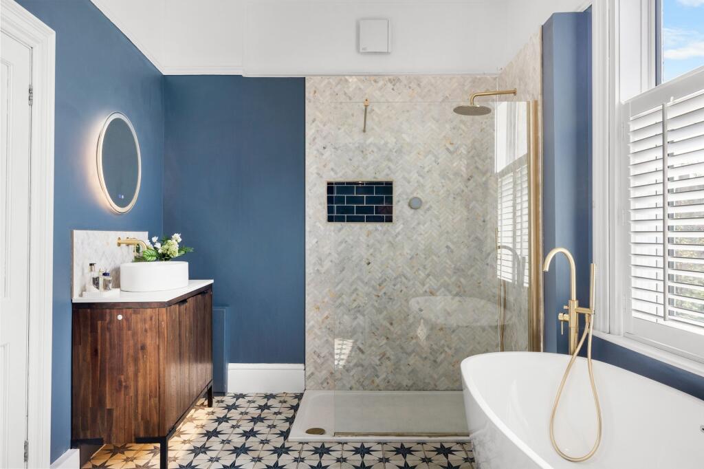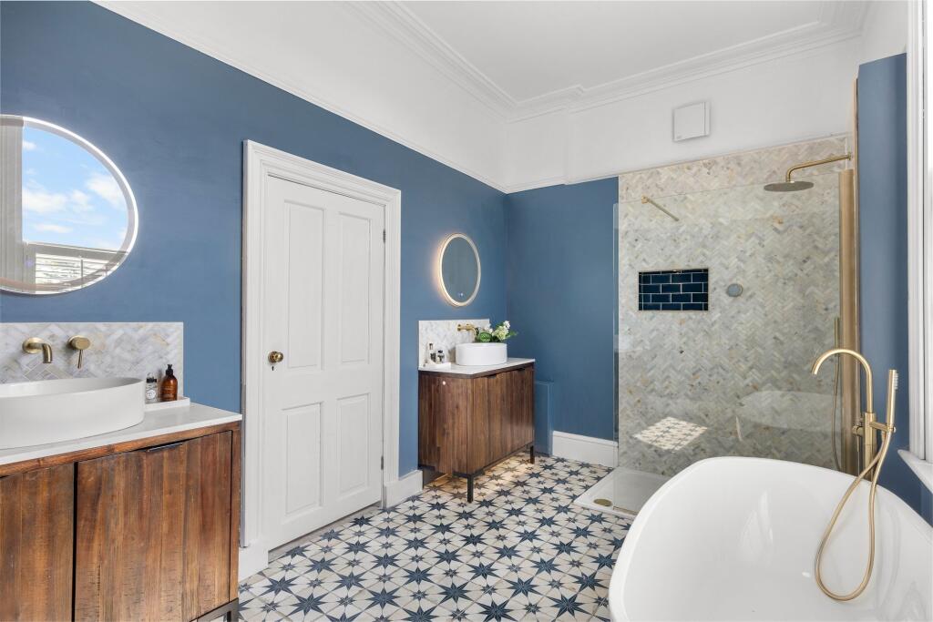 This beautifully updated seven-bedroom Regency villa blends classic period charm with 4,400 sq ft of spacious living areas across three floors, plus a two-room basement ripe for conversion.