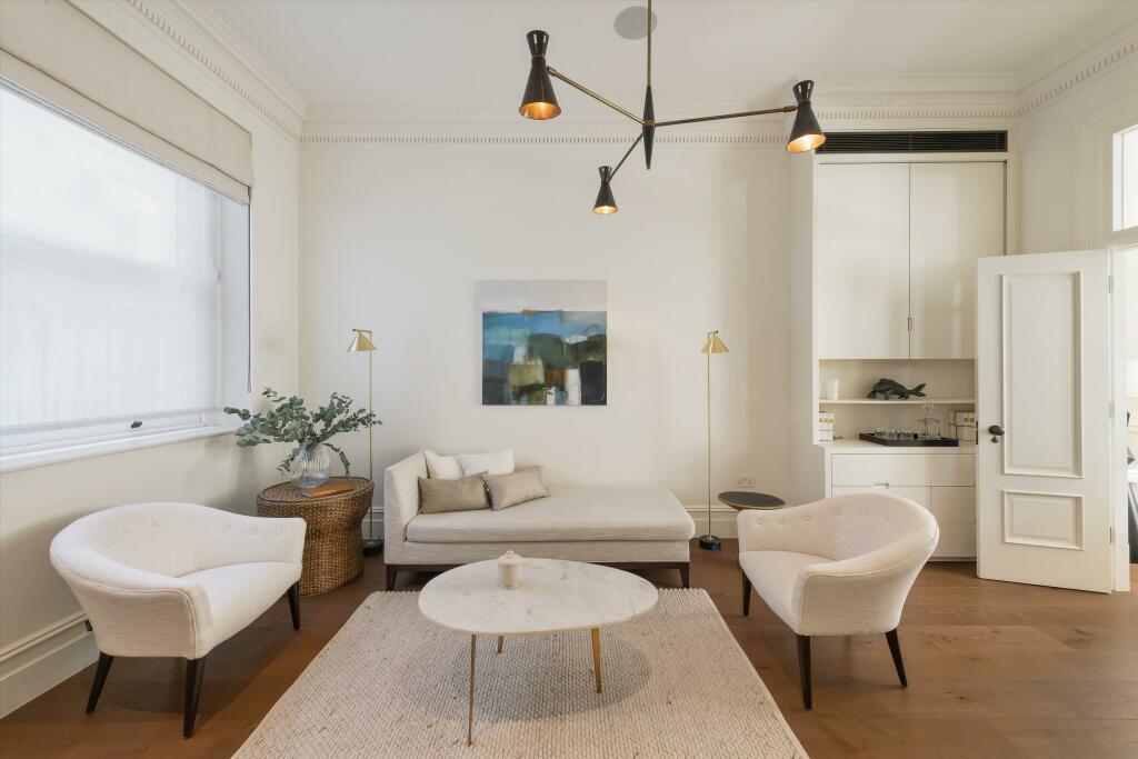 This property is a truly exceptional offering situated on the prestigious Chester Terrace in Regent’s Park, London. The listing, handled by Knight Frank, highlights a Grade I listed end-of-terrace house that has undergone a recent, high-quality refurbishment. The photos showcase a beautifully modernised interior with stylish décor and modern amenities while respecting the property’s classic architectural details. The home’s spacious layout includes multiple bedrooms and bathrooms, and a significant highlight is the large private garden, a rare feature for a property in such a central London location. The surrounding area is renowned for its elegance, green spaces, and proximity to excellent transport connections and schools. While the absence of square footage data limits a precise analysis of the price per square foot, the asking price reflects the property’s exceptional location, condition, and rarity in the luxury London market. Potential buyers should be aware of the high cost of maintaining a property of this size and stature in central London. This property is ideal for a buyer seeking a luxurious family home in one of London’s most desirable locations.