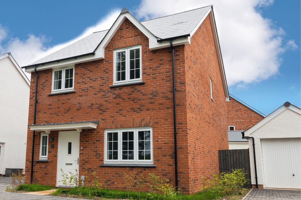 Plot 66 The Littaford, is positioned on a PRIVATE DRIVE, looking out over OPEN SPACE, with GARAGE and PARKING for two cars.