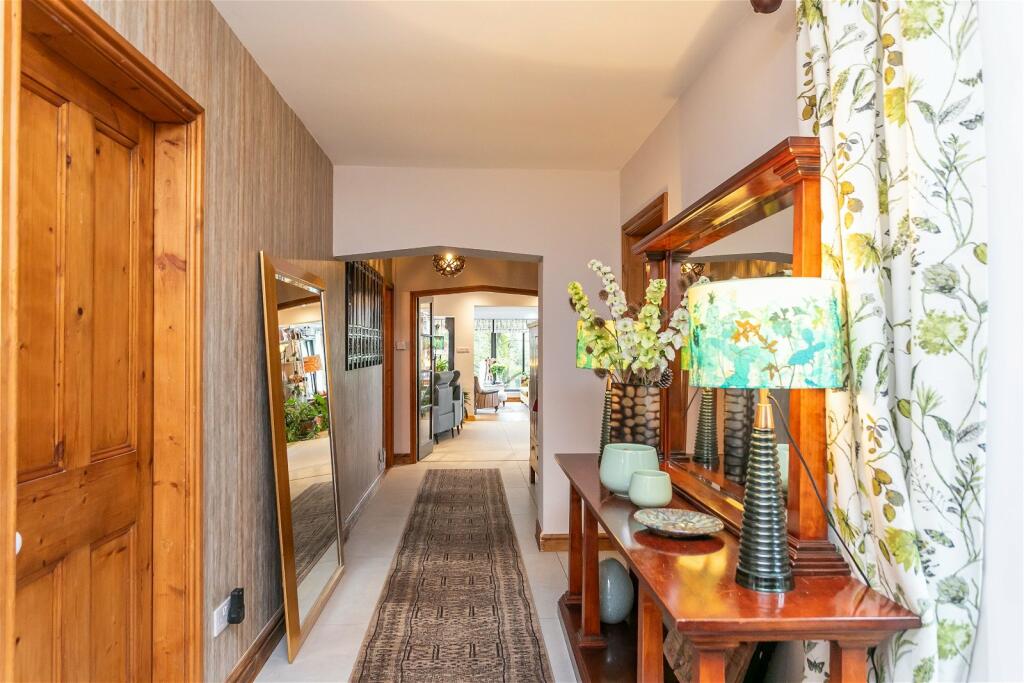 This detached bungalow in Butts Wood, Broughton-in-Furness, Cumbria presents a compelling proposition for buyers seeking a tranquil yet accessible property in the Lake District. The property is beautifully presented, exhibiting a high standard of interior design and apparent excellent condition. The kitchen and living spaces are open plan, creating a modern and spacious feel. The home benefits from numerous windows, allowing abundant natural light and showcasing appealing views of the surrounding landscape. The interior features high-quality fixtures and finishes. A key asset is the extensive garden, showing varied landscaping and multiple areas for relaxation, potentially providing privacy and views.