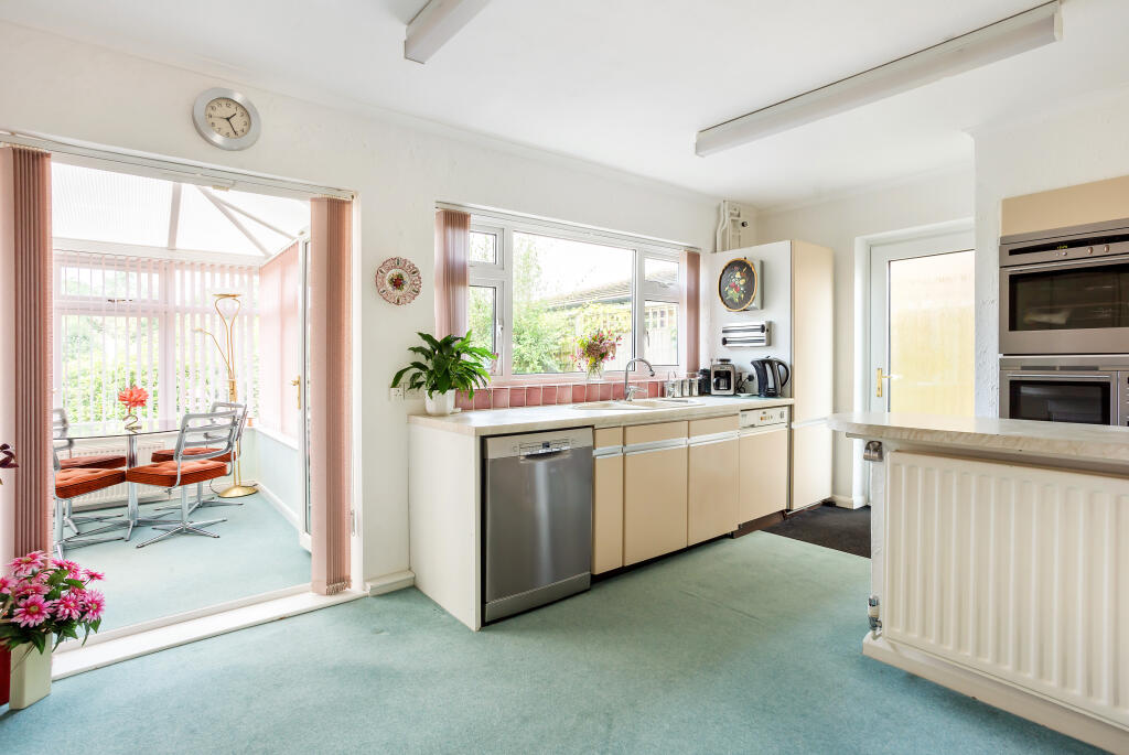 The house itself boasts a large garden, a conservatory and a sizeable layout which includes multiple reception rooms and four bedrooms. The property shows evidence of being well-maintained structurally, however, the interior style appears somewhat dated, particularly in the kitchen and bathroom. Potential buyers should be prepared for some level of renovation or modernisation to update to their taste. The kitchen cabinetry and bathroom fixtures, for example, would likely benefit from an upgrade.