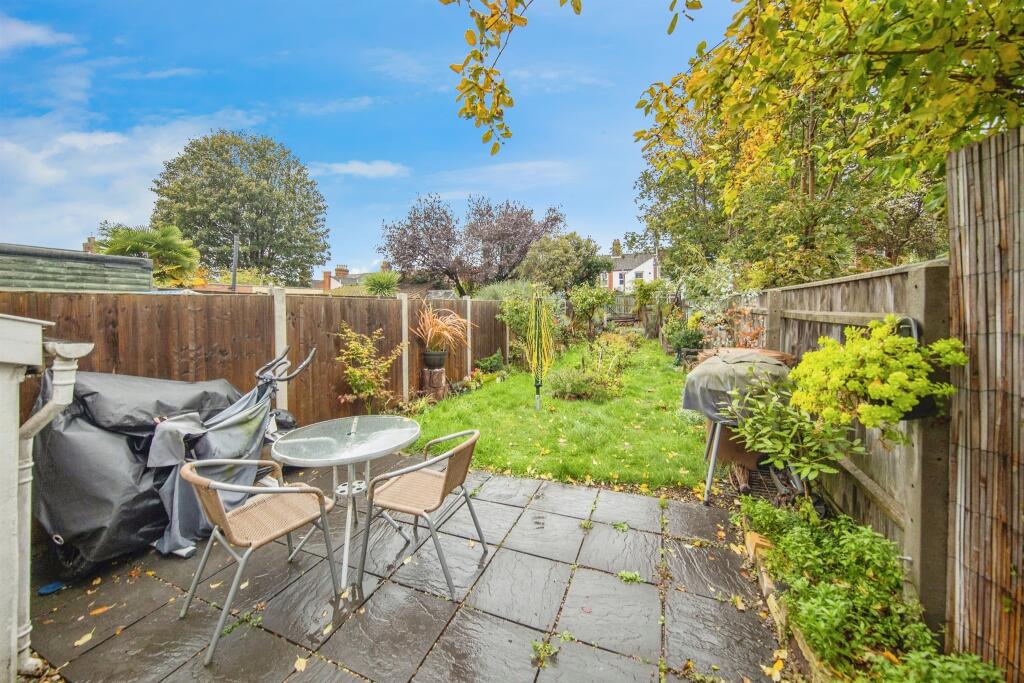 This is a two-bedroom terraced house on Blenheim Road, Ipswich. The property features two bathrooms, a garden, and appears to be in generally good condition. The location offers convenient access to schools, transportation, and local amenities. The property retains some traditional features while incorporating modern updates.