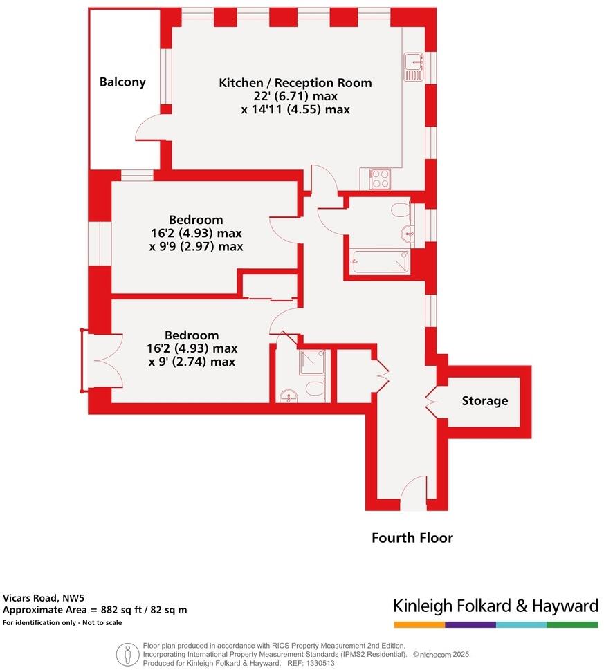 This is a modern, two-bedroom flat in the desirable Kentish Town area of London. The property is in excellent condition and benefits from a balcony and access to a communal roof terrace. The location is well-served by public transport and is close to good schools and local amenities. The asking price is reasonable for the area and the condition of the property.