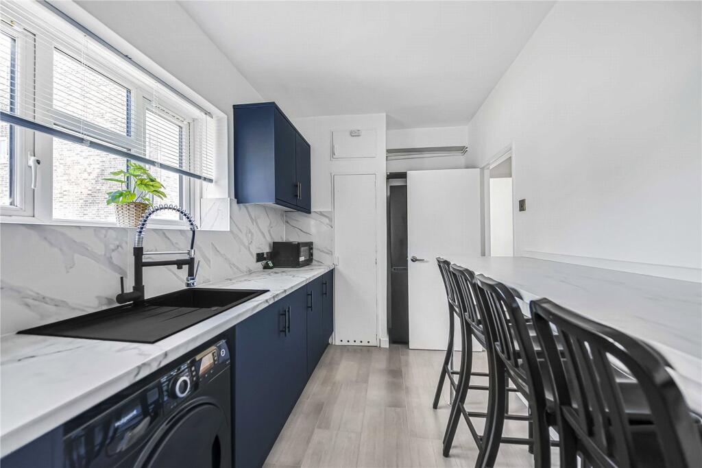 The property comprises of entrance hall with built in storage, modern bathroom with matt black shower fittings and heating. Recently refurbished fully fitted kitchen with appliances, finished to an impeccably high standard, with ample cupboard space, bar stool seating area, integrated hob with ex...