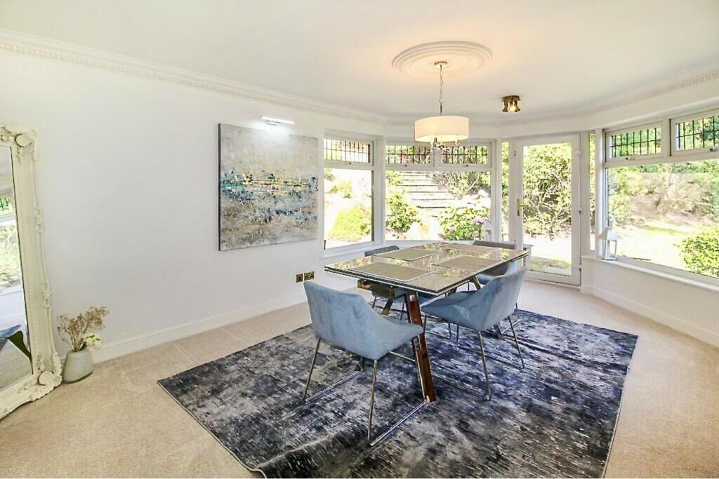 Edenwood Road is located in the Eden area of Rossendale, Lancashire. The property is a detached house with five bedrooms and two bathrooms. Based on the images provided, the property appears to be in excellent condition, having undergone recent modernisation while retaining some traditional character. The kitchen and bathrooms are modern and well-maintained. The property benefits from a substantial garden with mature trees and landscaping, offering ample outdoor space. The list price of £1,050,000 is significantly higher than the average house price in the area (£436,471). However, considering the size of the property (although the square footage is not provided), its excellent condition, and the large garden, the price may be justified within the context of the local market. Nearby properties with similar characteristics command prices in a similar range. The proximity to several well-regarded schools, all rated \‘Good\’ or \‘Outstanding\’ by Ofsted, adds to the property’s desirability. While information on nearby transportation is missing, the overall location and the property’s features support a higher-than-average price.