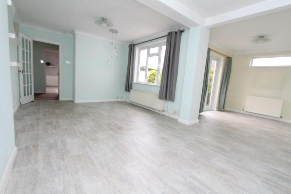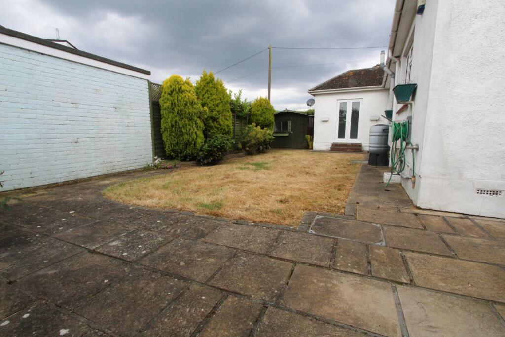 This two-bedroom detached bungalow situated on Common Lane, Thundersley, offers a convenient location with access to local amenities and transport links. The property includes a detached garage and a carport, providing ample off-street parking. The interior features a modern shower room and a kitchen with some updates, though some parts, like the flooring in one bedroom, appear dated and need work. The provided photos show a reasonable-sized living/dining area, but there’s a lack of information on the exact dimensions of other rooms. The bungalow’s exterior presents as typical for the area, with a small front garden and a backyard which also looks in need of some landscaping. Overall, the property is livable but could benefit from renovations to increase its value and desirability. While the location is satisfactory and the list price seems relatively reasonable in the context of nearby properties, it is difficult to conduct a conclusive valuation without complete information on the size of the plot, alongside more specific information regarding other properties listed nearby.