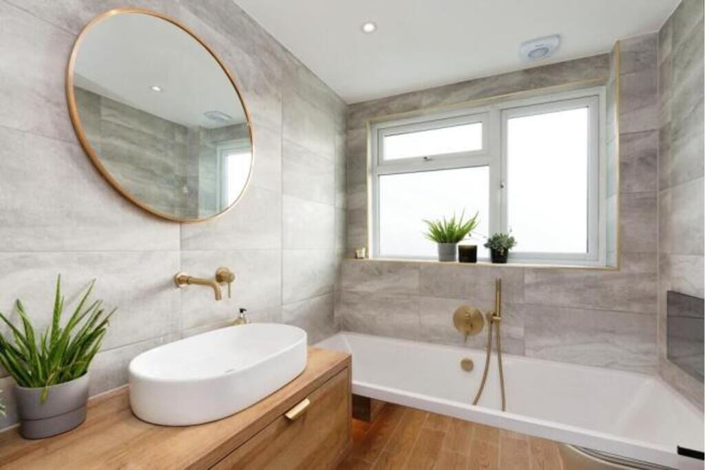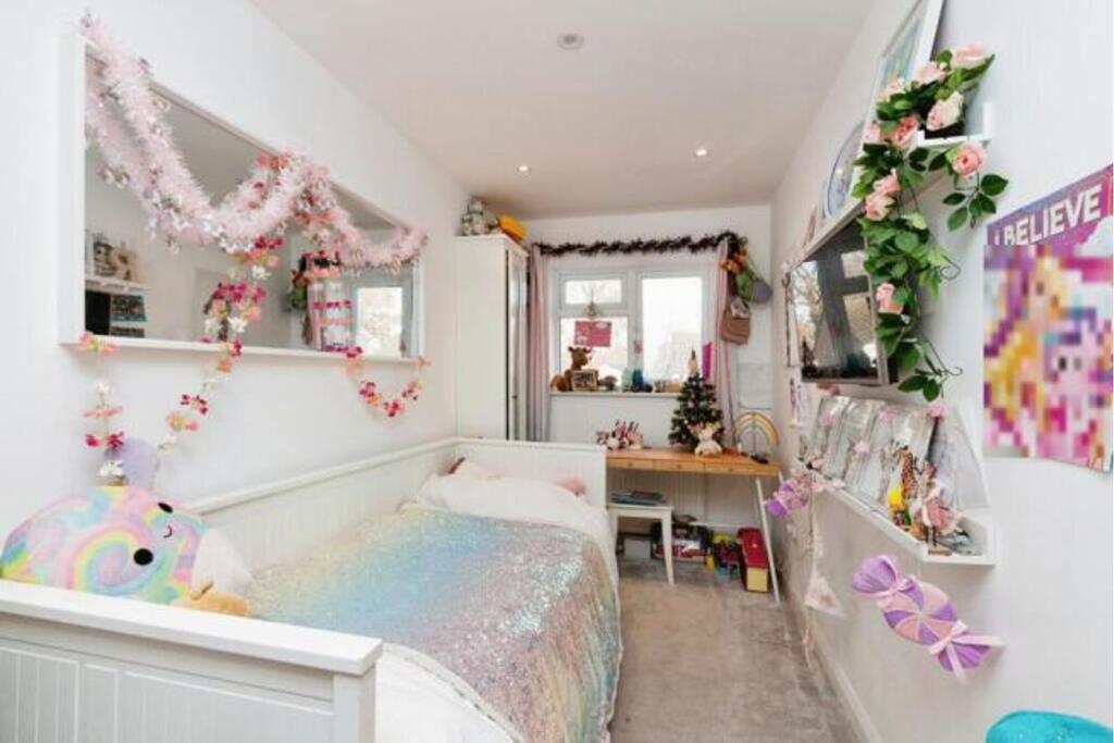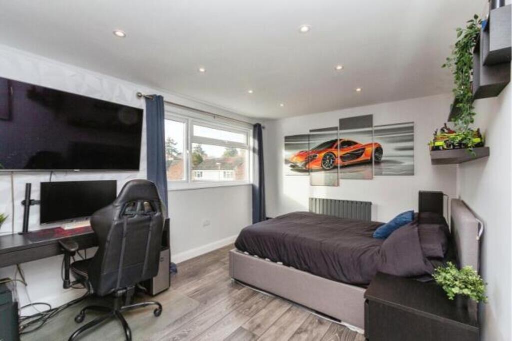 The property is a 5-bedroom, 4-bathroom house with a total area of 1,205.70 sqft situated on a 2,288.00 sqft plot. The list price is £915,000. The average price for similar properties in the area is £792,679, with an average price per sqft of £533. This property is slightly below average size for the area. The property appears to be in excellent condition based on the provided photographs. It has undergone a significant renovation or extension, resulting in a modern and updated interior. The kitchen and bathrooms are particularly noteworthy, showcasing high-quality fixtures and finishes. The extension has added significant living space. The property benefits from a garden, visible in the provided images. The size of the garden is not explicitly stated, but it appears to be of a reasonable size for a property of this type. Considering the property’s location in Crowthorne, Berkshire, proximity to schools (Our Lady’s Preparatory School is 0.27 km away, for example), and its relatively good condition and the inclusion of a garden, the asking price of £915,000 may be considered slightly high compared to the average price per square foot in the area. However, the extensive renovations and modern features could justify a premium. More comparable properties in the immediate vicinity would be needed to make a definitive statement on price. The lack of sqft data for nearby properties makes a precise comparison difficult.