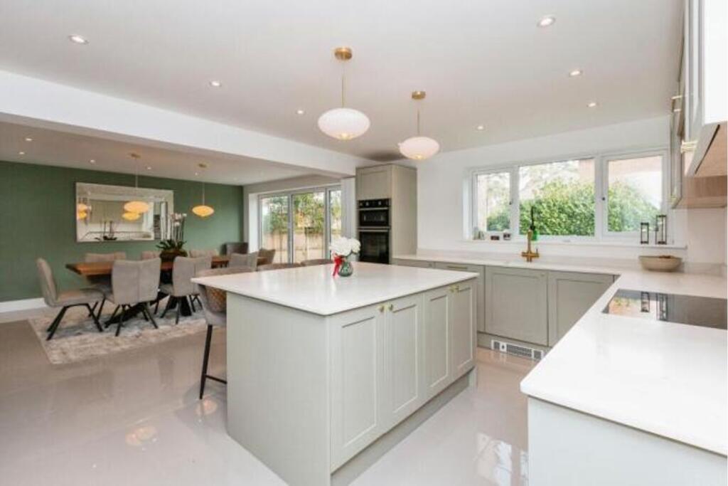 Beautifully extended spacious home finished to a high standard with 5 bedrooms, 4 bathrooms, 27ft x 25ft open plan kitchen living dining room, home gym and separate external home office, situated in a popular location within a desirable village. This home has been extended and updated by the cur...