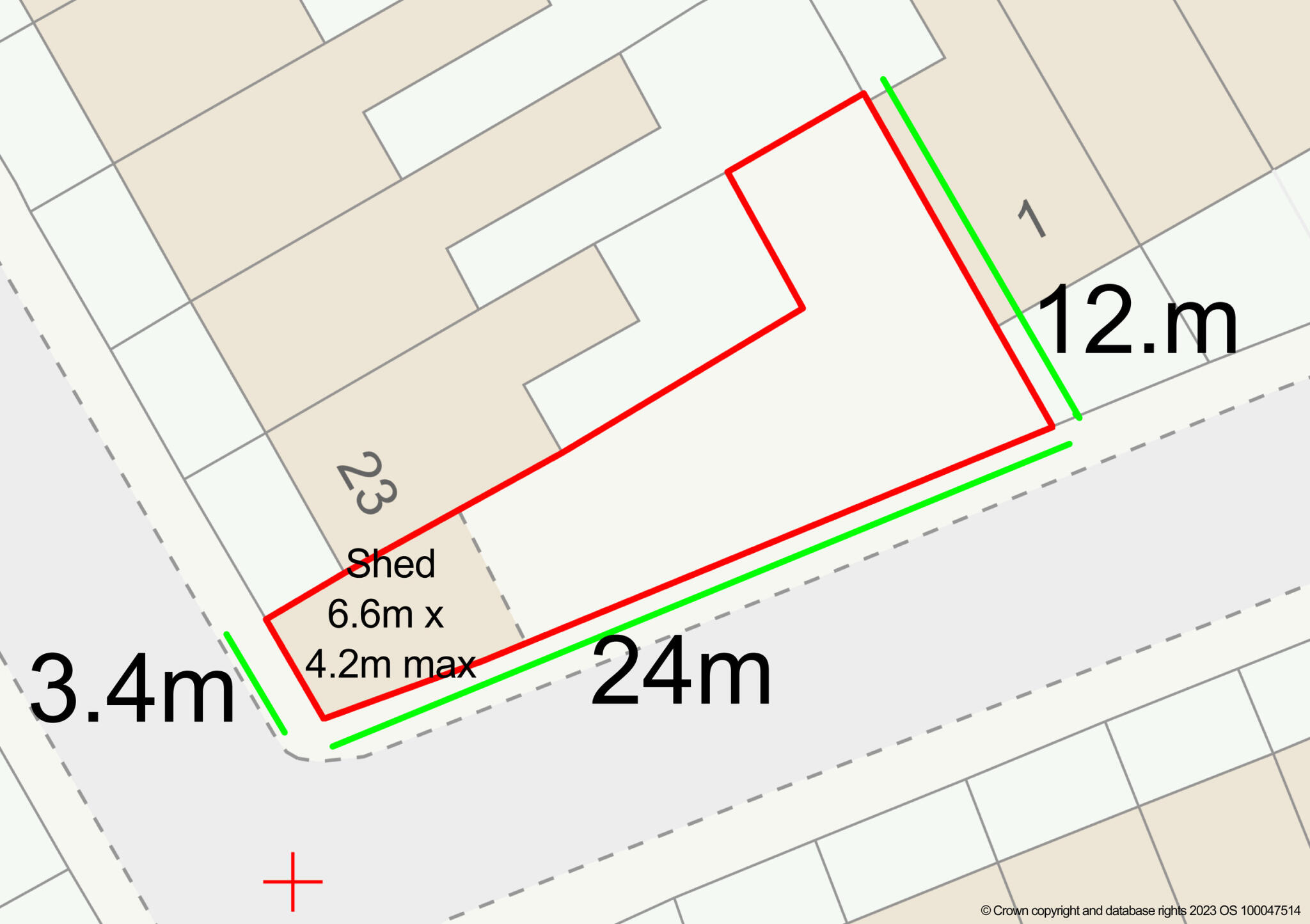For sale by livestream auction at 6.30pm on 16th September 2025. A freehold corner plot of land, used as a builders store with vehicular access, hard standing and storage shed. Guide Price £100,000+++