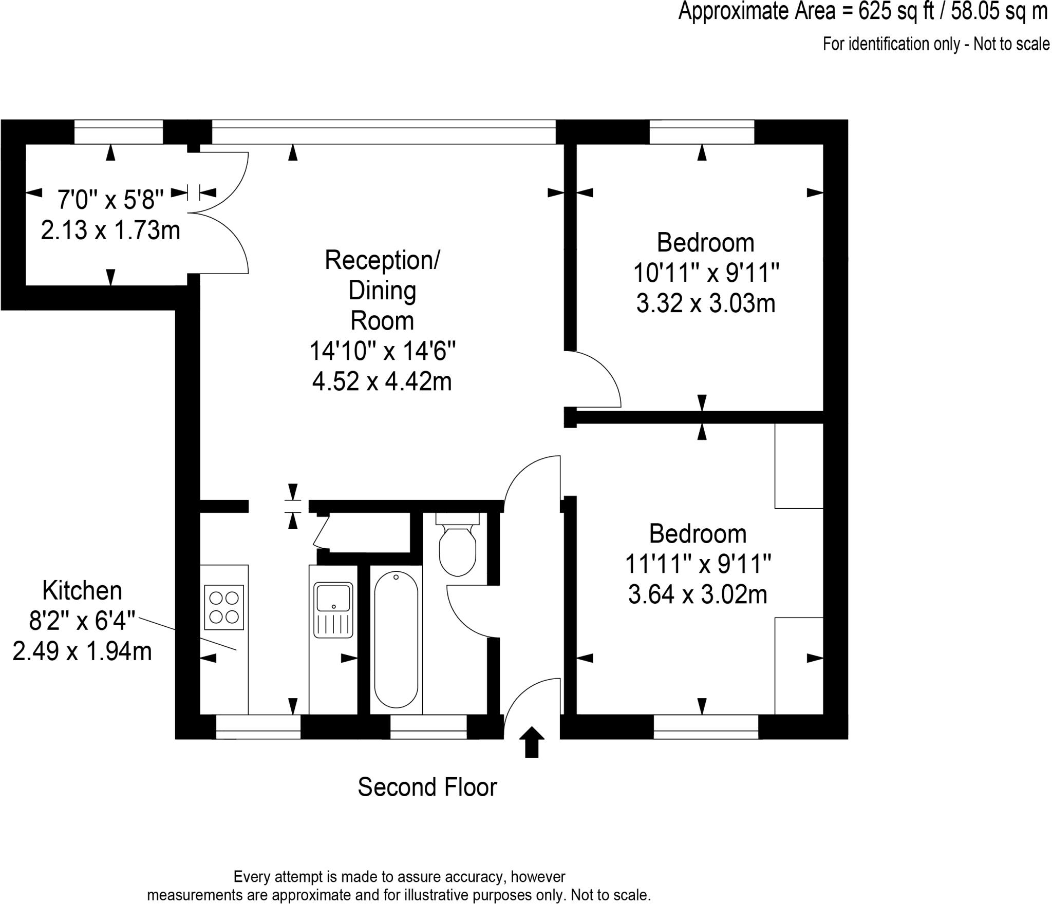 A great first time purchase! In need of modernisation is this bright two double bedroom second floor flat with no onward chain and share of freehold located close to Victory Park, Addlestone High Street and M23/M3 links. Approached via an external walkway with lovely views over fields and a pleas...