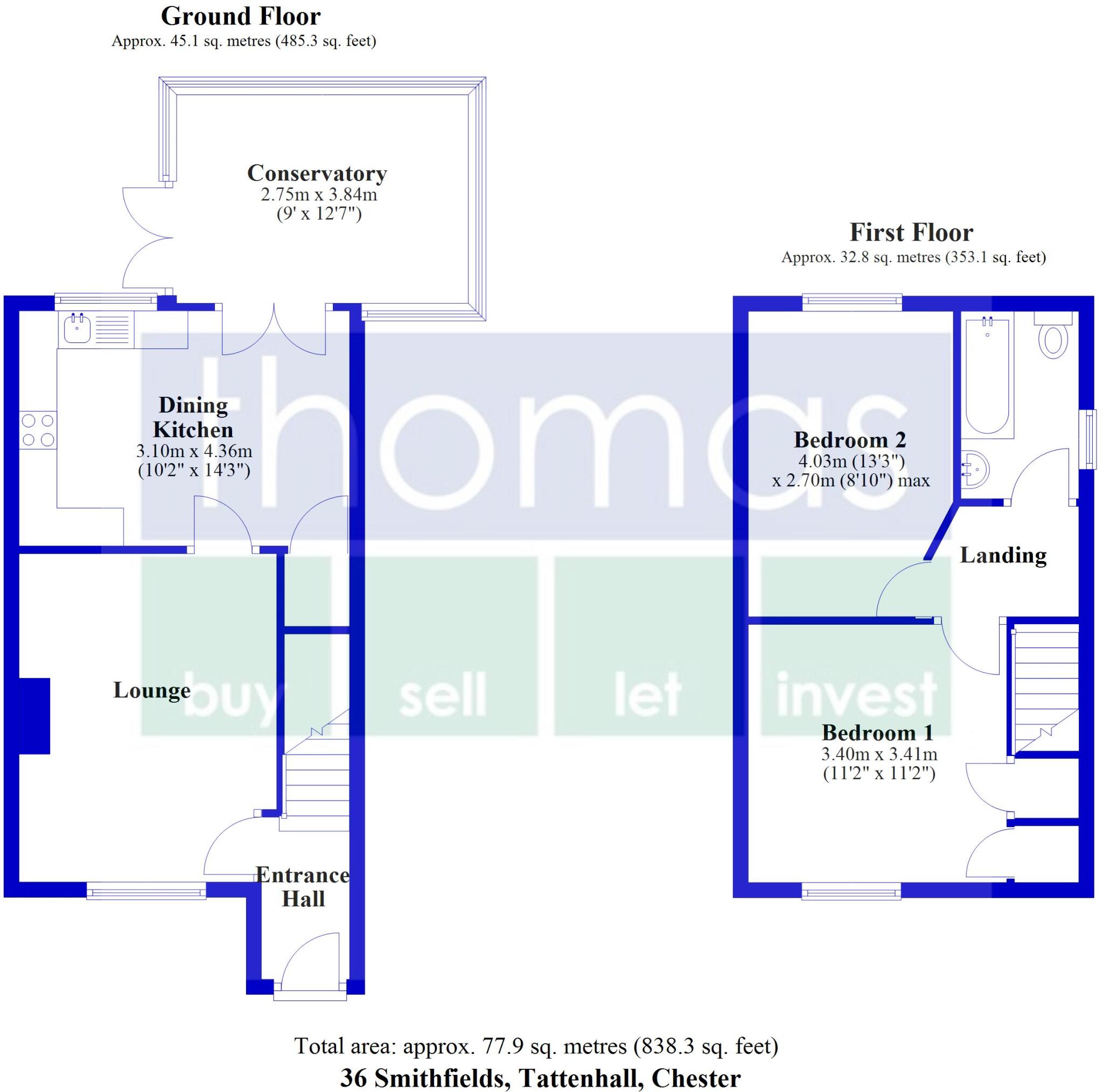This semi-detached property is located in Smithfields, Tattenhall, Cheshire. The house has 2 bedrooms and 1 bathroom with a total of 501.06 sqft. The property appears to be in good condition, with modern interior design and a well-maintained garden. The average price per square foot in the area is £674. The property is listed at £168,750, working out at approximately £336 per square foot. This is significantly below the average for the area, suggesting good value for money. Tattenhall Park Primary School is located within 3km of the property and has a good Ofsted rating.