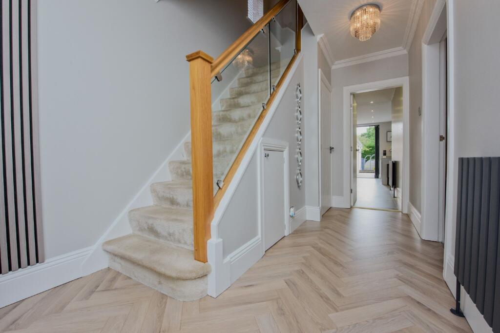 This is a detached property located on Hatherton Road, Shoal Hill, Cannock. It features 4 bedrooms and 3 bathrooms within 2,091 sqft of living space. The property appears to be in excellent condition, showcasing modern interior design and recent renovations. The kitchen is modern and well-equipped, and the bathrooms appear newly renovated. The property includes a well-maintained garden with a shed, offering outdoor space for relaxation and recreation. The list price is £650,000. The average price per sqft in the area is £289. This property is listed at approximately £311 per sqft. The average house price in the area is £313,271. Considering the size, the number of bedrooms and bathrooms, the condition, and the location, the price appears reasonable. Nearby transportation includes Cannock train station, approximately 2.84 km away. Several schools are located within a 1.5 km radius, including St Lukes Cofe Primary School and Cardinal Griffin Catholic College.