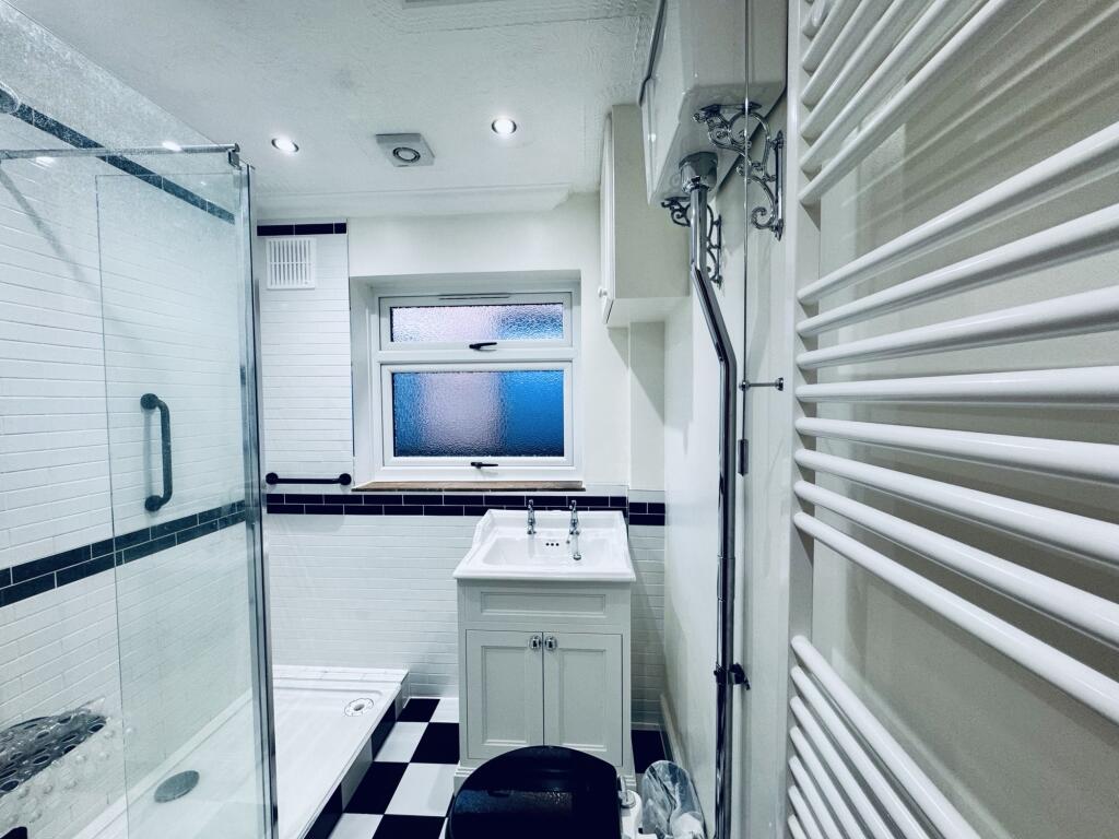 This is a detached bungalow in Dogsthorpe, Peterborough. It features two bedrooms and two bathrooms. The property includes a garden with a shed. While the bathroom has been modernised, some rooms would benefit from updating. Dogsthorpe Academy is nearby and has a good Ofsted rating. Peterborough Station is also within a reasonable distance.
