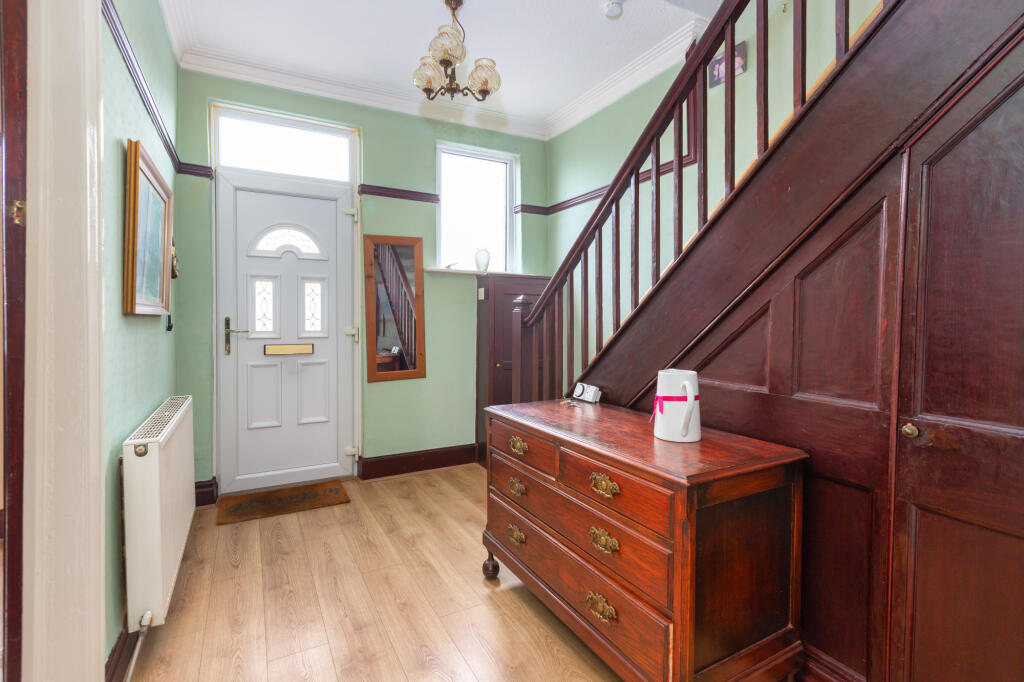 Traditional three-bedroom semi-detached home on Fleetwood Road, Thornton. Features two reception rooms, fitted kitchen, spacious four-piece bathroom, driveway, and generous rear garden with lawn, pond, greenhouse, and patio. A character property with superb potential. No chain.