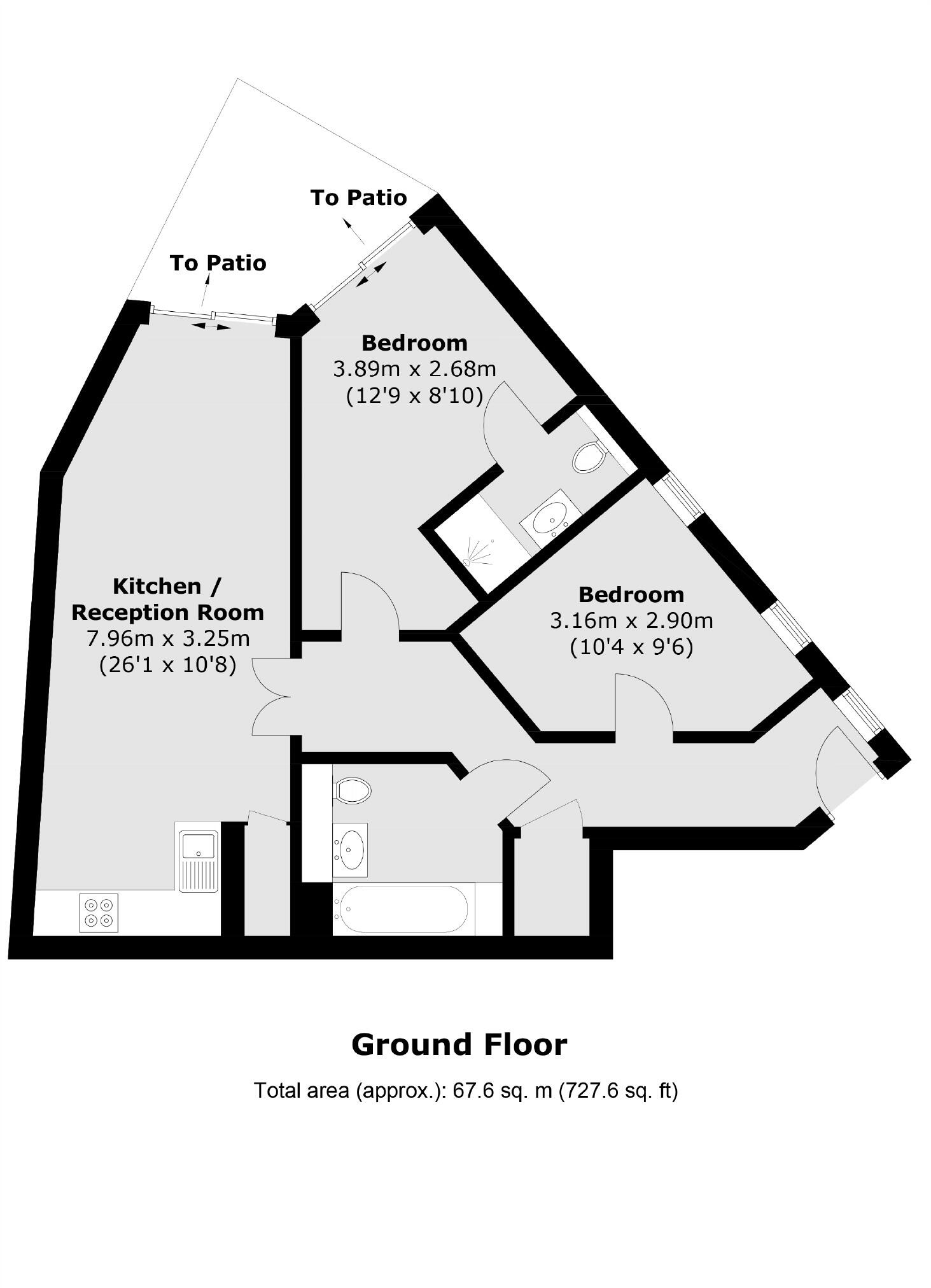 A two bedroom, two bathroom apartment with private outside space. Residents benefit from bespoke designed kitchens, a 999 year lease and a new build warranty of 10 years with peace of mind due to full building control sign off on all aspects of build and design.