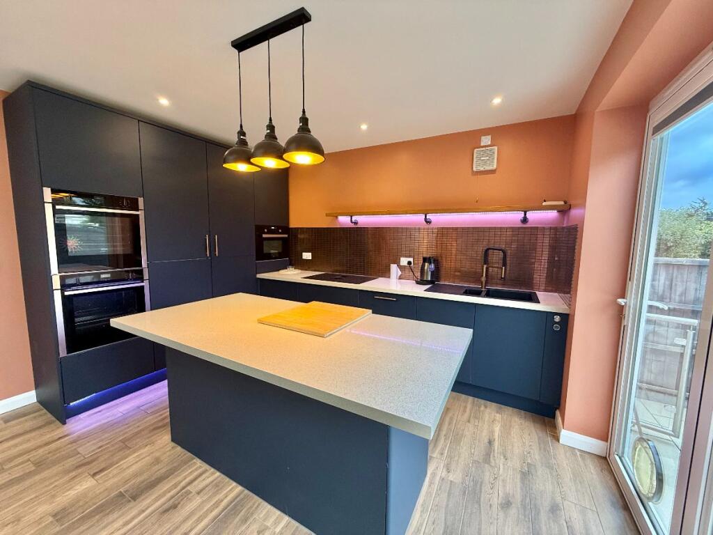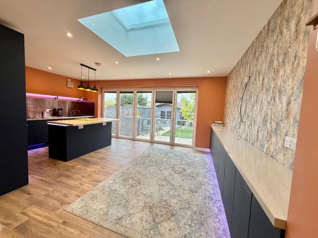 This is a three-bedroom bungalow on Mayland Avenue, Canvey Island. The property is in good condition, with a modern kitchen and bathrooms. It has a decent-sized garden with a patio area and sheds. The property is located within a reasonable distance of local amenities and schools. The listing price is £380,000, which is slightly above the average price for the area, but seems reasonable given the condition of the property. The property also benefits from off street parking and a garage.