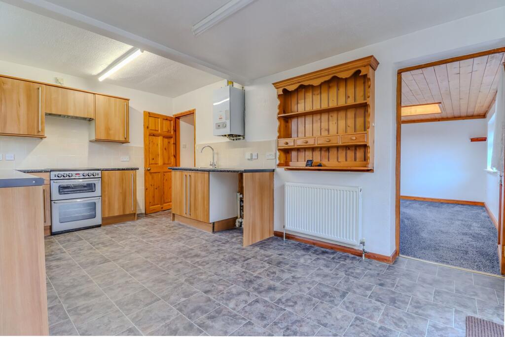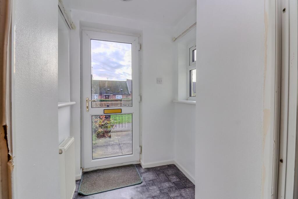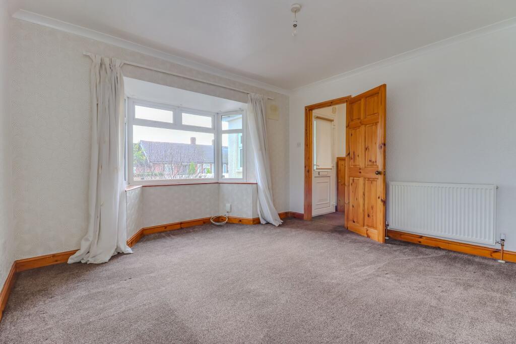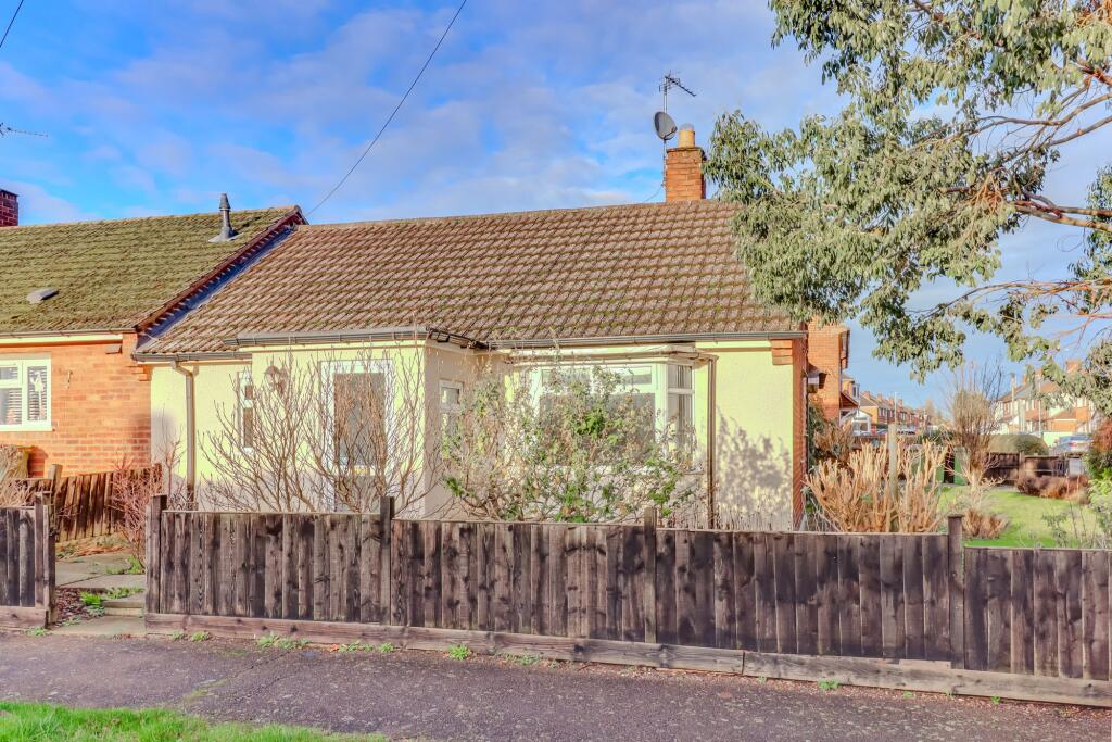 NO UPWARD CHAIN - Two-bedroom end-terrace bungalow on a corner plot with rear extension, sun room, off-road parking, lawned gardens, and scope for further development (subject to permissions).
