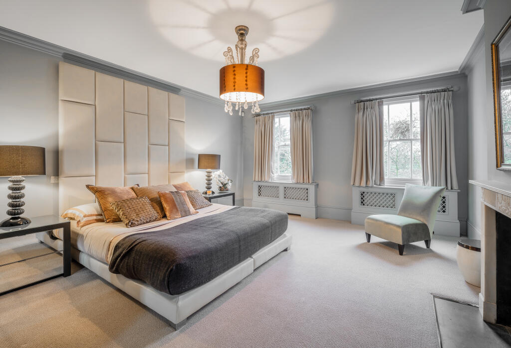 The property is a large, detached house situated in Regent’s Park, a highly desirable area of London. Regent’s Park is known for its beautiful parkland, excellent schools, and proximity to central London. The location benefits from easy access to various transportation options, including several Underground stations and mainline train stations. The presence of high-quality schools nearby adds to the desirability of this location for families.