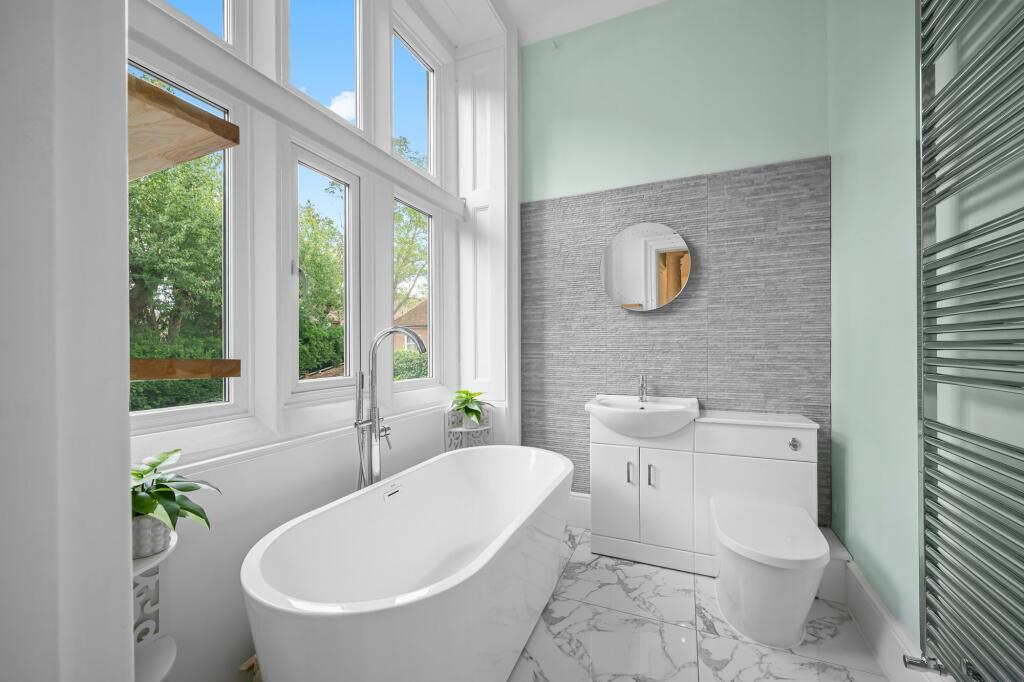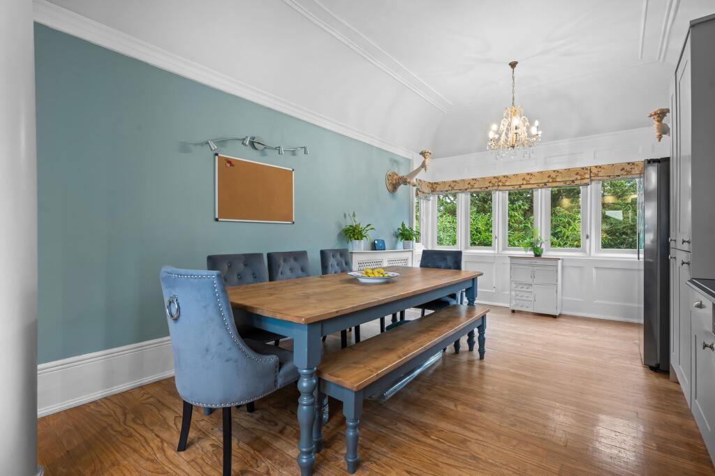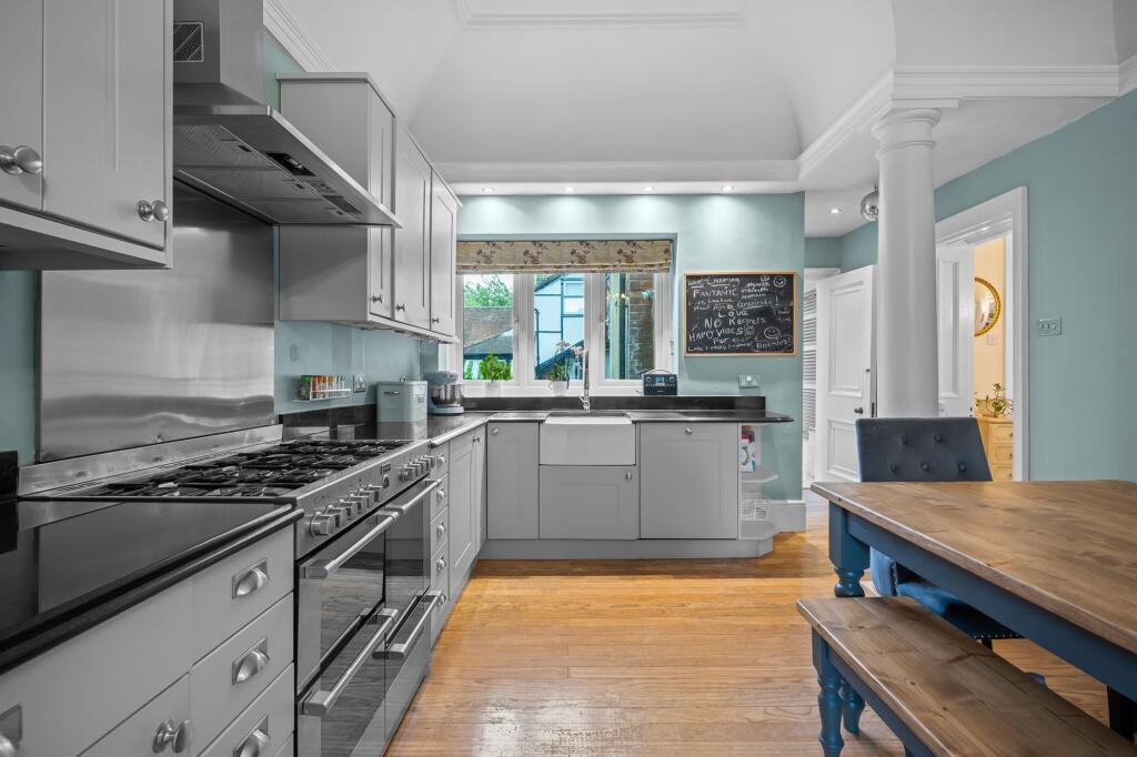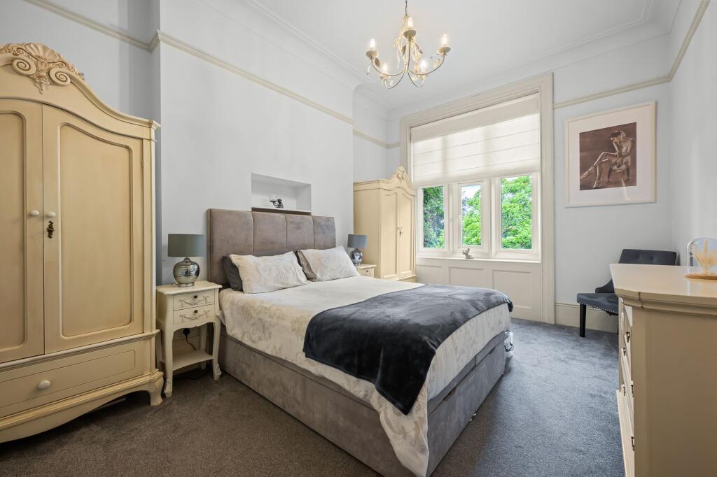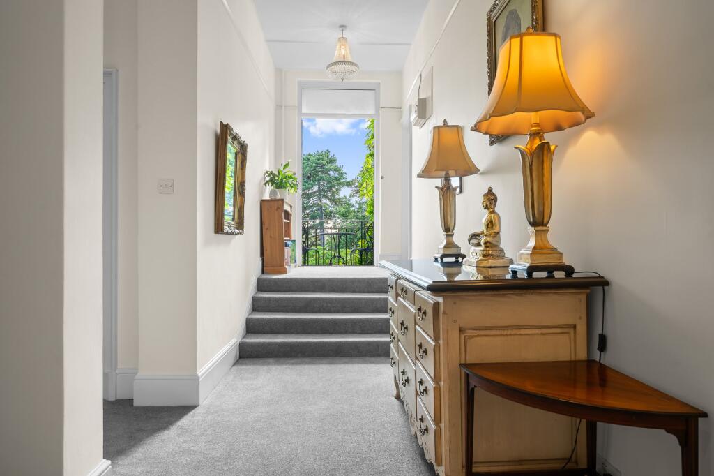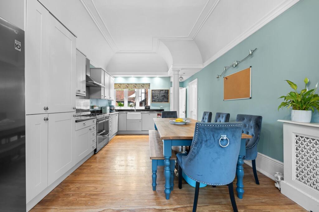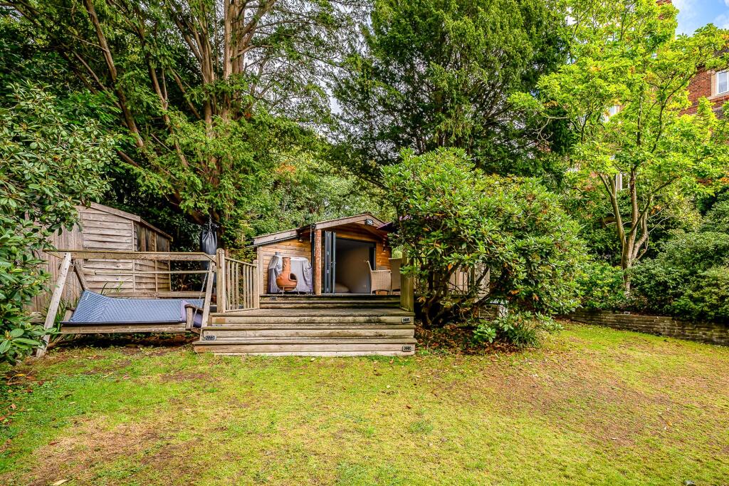 Stunning three bedroom first floor apartment with garage, allocated off street parking and glorious mature private garden with summerhouse, set within an impressive period property in the heart of Chislehurst.