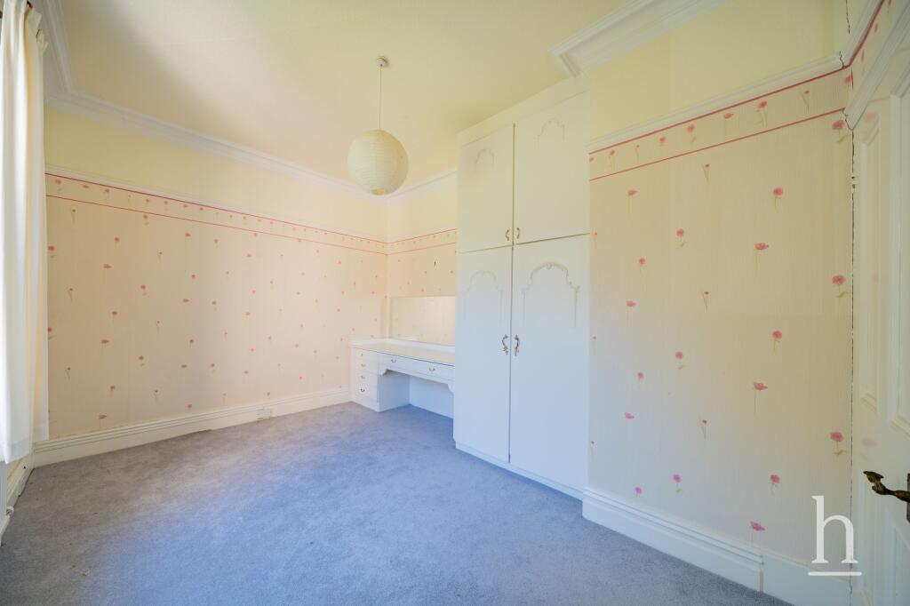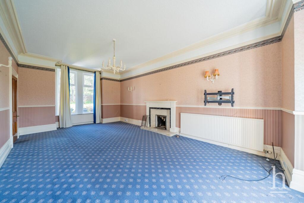 The house itself appears to be a period property, exhibiting traditional architectural features. However, the interior photographs suggest that it is in need of significant modernisation and renovation. The wallpaper, carpets, and fixtures throughout appear dated and worn, indicating a need for considerable investment to bring the property up to a modern standard. The property also has a sizeable garden, which is a desirable feature in this area.