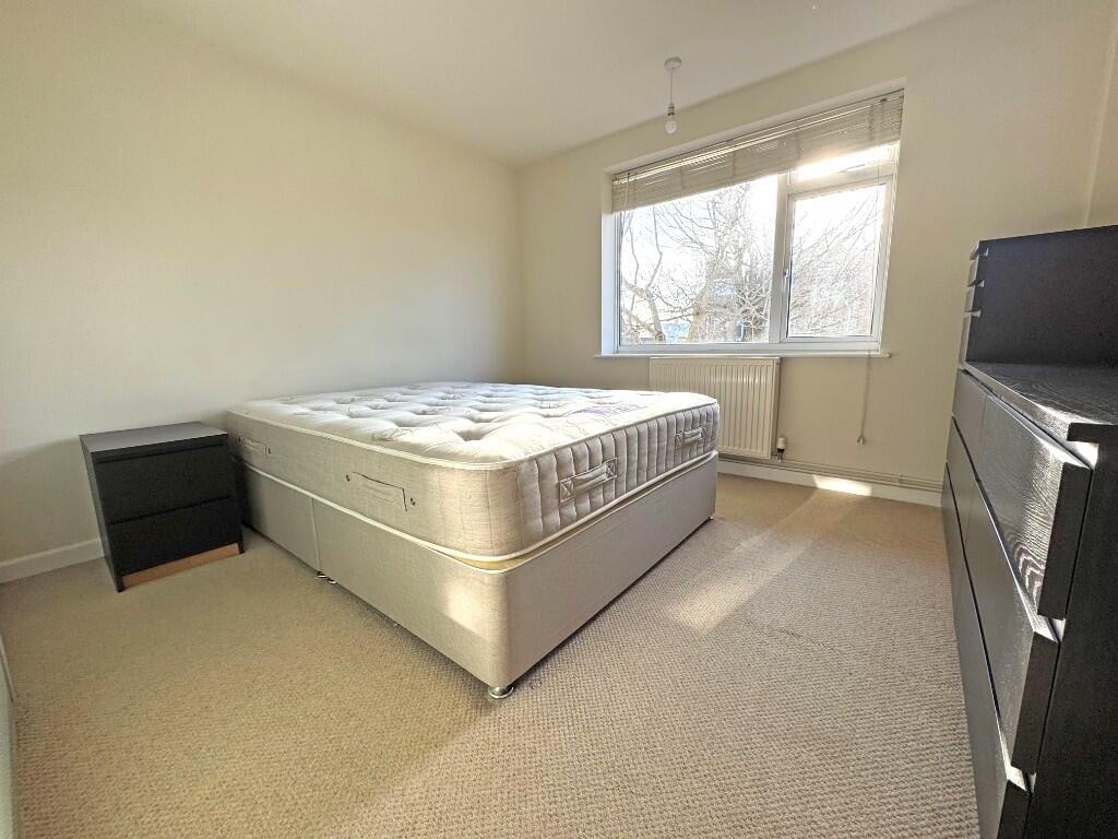 Inside, the flat appears clean and well-maintained. The provided images show a modern bathroom and a recently updated, adequately sized kitchen. The living space is comfortable, featuring natural light and hardwood flooring. While the property appears to be in good condition, it is not especially luxurious or high-end. The bedrooms are of adequate size, though there is no mention of storage space.