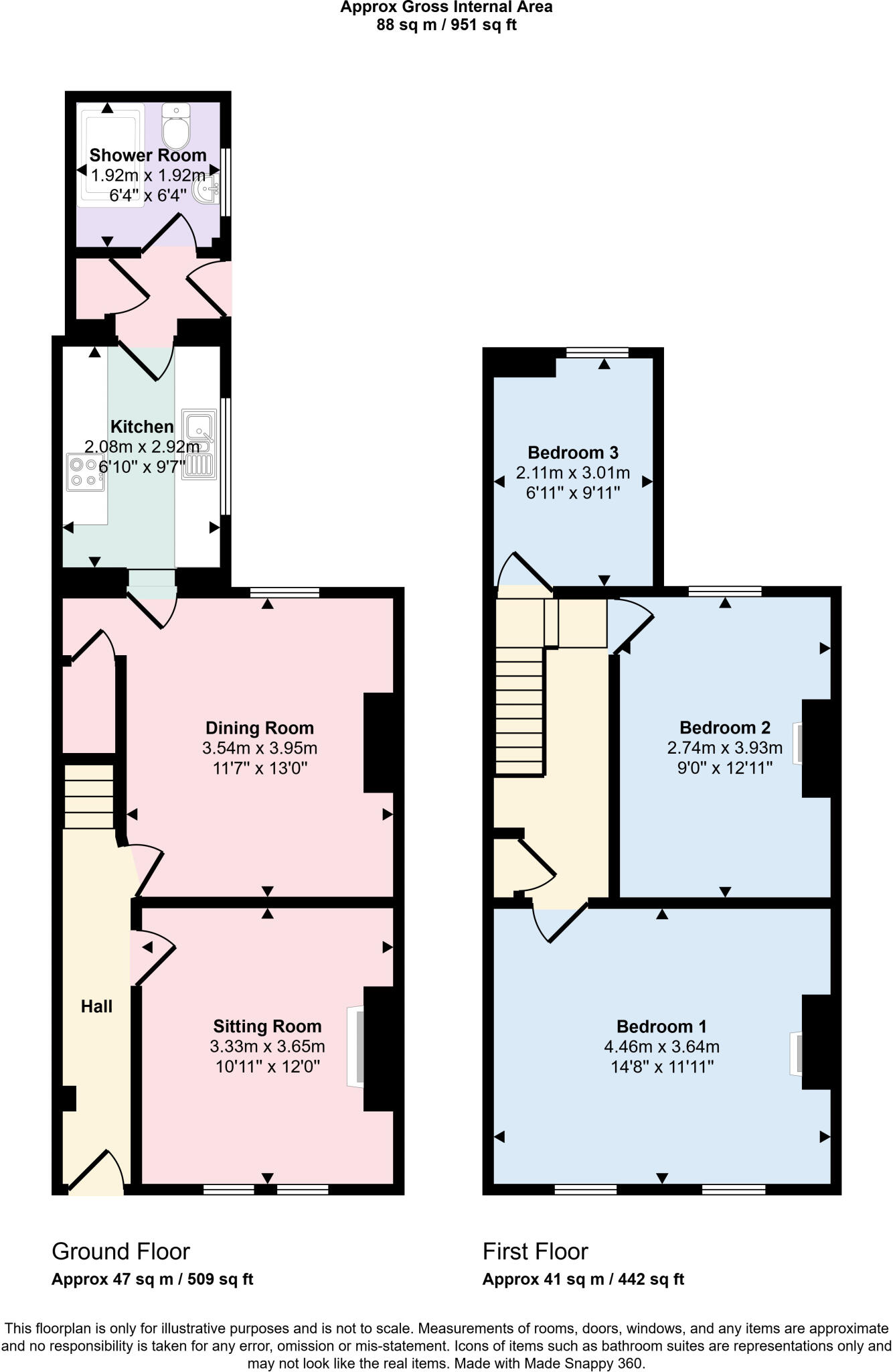 951sqft three bedroom no chain mid terrace with two receptions and west facing level rear garden