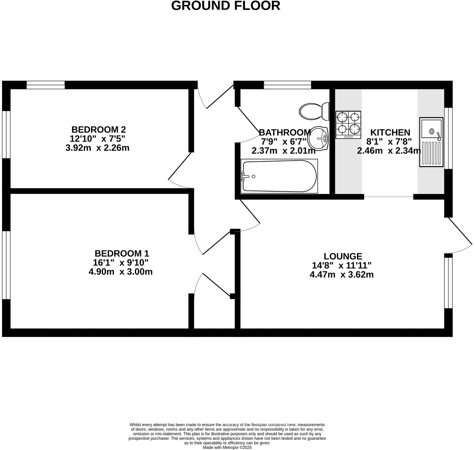 Two bedroom unfurnished ground floor flat with communal garden