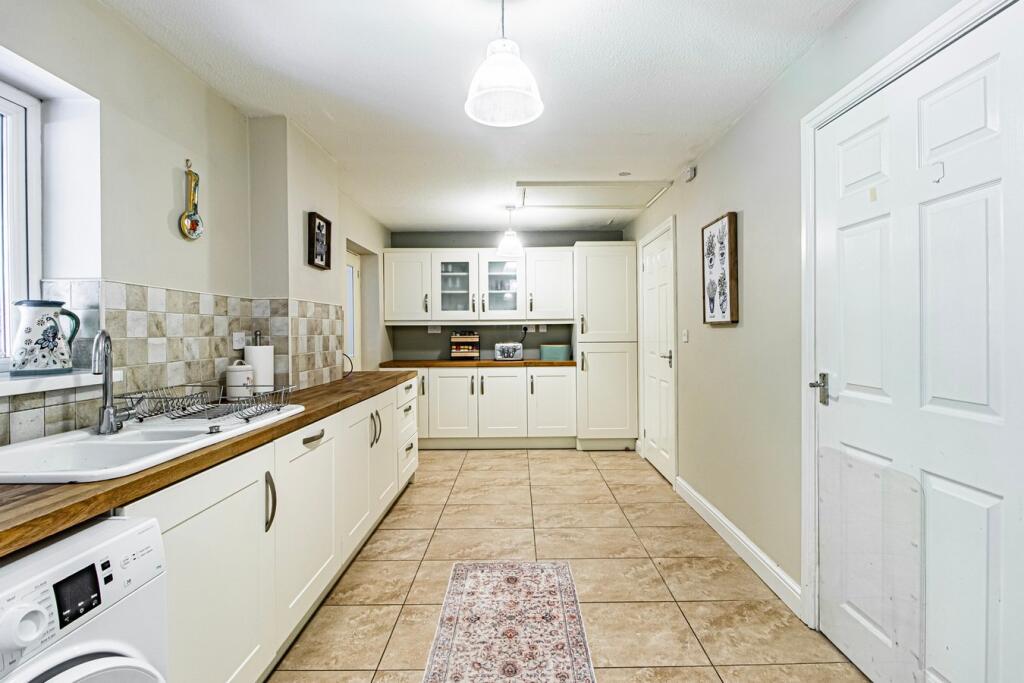 The property is a 4-bedroom, 2-bathroom detached house located in Llantwit Fardre, Pontypridd, with a list price of £349,950. The property has a total area of 738.39 sqft. Based on the provided images, the property appears to be in excellent condition, well-maintained, and recently updated. The interior is modern and clean, with a contemporary design and finishes. The kitchen and bathrooms are modern and well-equipped. The property benefits from a relatively small, enclosed rear garden with a patio area and a shed. While not expansive, it offers a private outdoor space. Considering the average price of similar properties in the area (£337,746) and the average price per sqft (£457), the list price of £349,950 for this 738.39 sqft property seems slightly above average, but reasonable given its condition and the modern updates. The nearby comparable properties show a range of prices, with some above and some below the list price. However, the lack of sqft data for these comparables makes a precise comparison difficult. The proximity to schools and transportation links adds value to the property’s location.