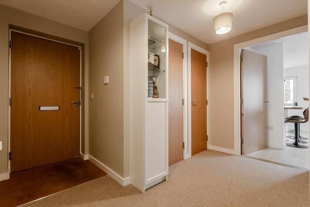 Exceptional, south-facing ground-floor apartment with private terrace, quality finishes, and generous interiors, set within the acclaimed Strada development in vibrant Fettes, Edinburgh. The carpeted hall provides access throughout the apartment, featuring two built-in store cupboards and a se...