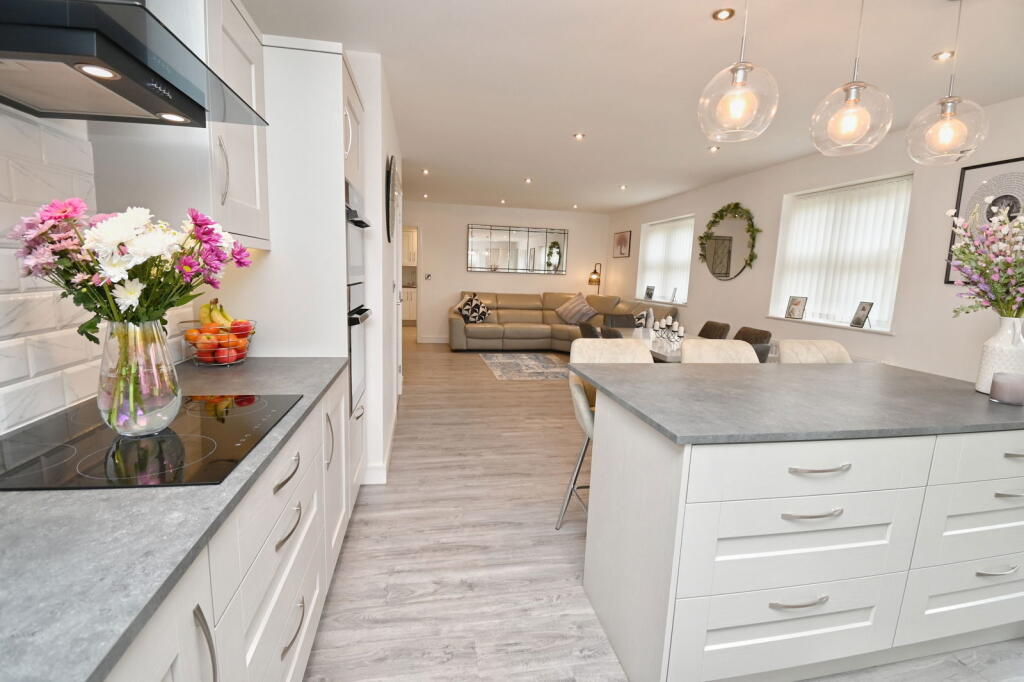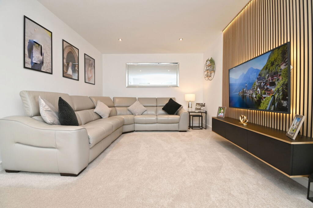 This four-bedroom, three-bathroom property located on Upper Hoyland Road in Hoyland, Barnsley, presents itself as a modern and well-maintained family home. The images showcase a high standard of finish, suggesting recent renovation or new construction. The open-plan kitchen and living area is a key feature, ideal for modern family living. The property benefits from ample natural light and a neutral colour palette. The inclusion of a well-maintained garden and paved patio area adds to the appeal. The location in Hoyland offers a balance between a quieter residential setting and convenient access to local amenities and transportation links, including relatively easy access to the M1 motorway. While the lack of square footage data prevents a precise assessment of value per square foot, the list price appears to be generally in line with comparable properties in the area. Overall, this property is likely to be attractive to families seeking a modern, well-presented home in a convenient location.
