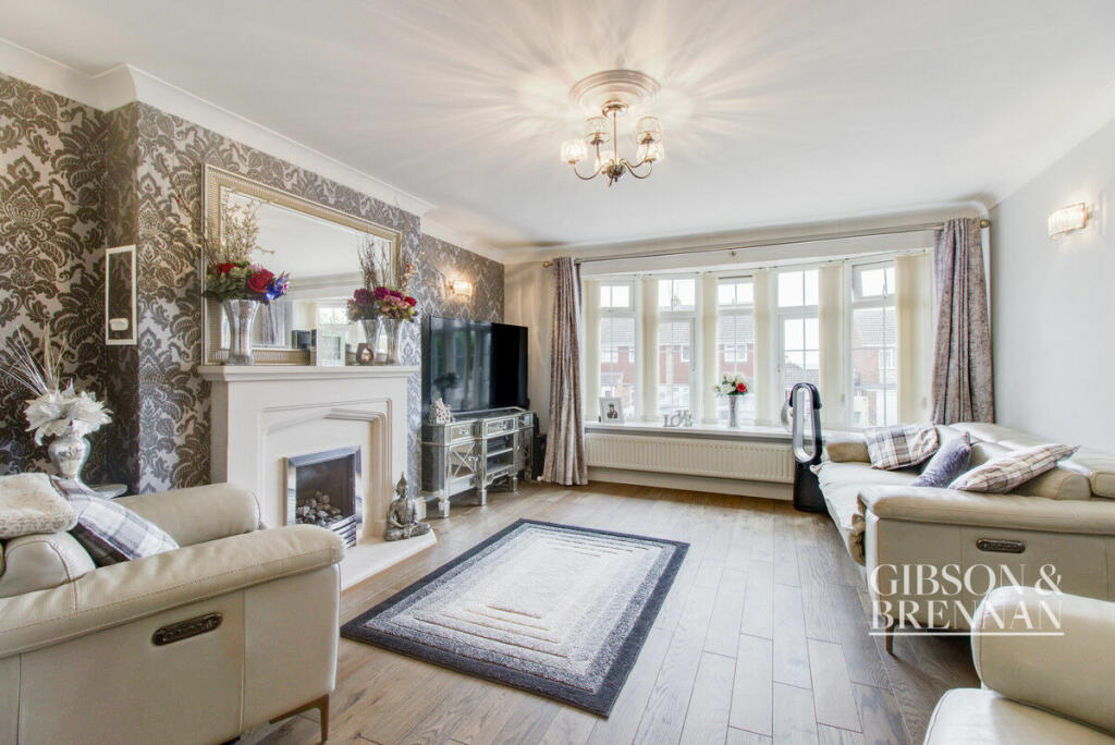 Four-bedroom detached family home with garage and ample off-street parking. Features two reception rooms, landscaped garden backing onto open playing fields, and modern kitchen and bathroom. Walking distance to local shops and train station