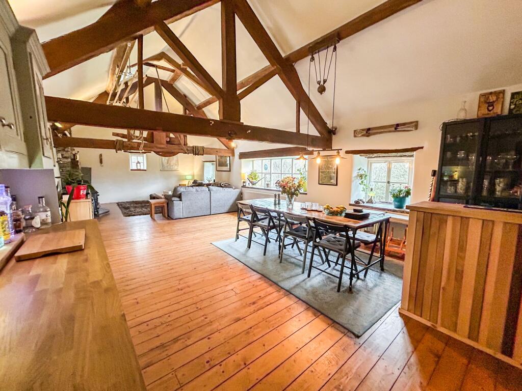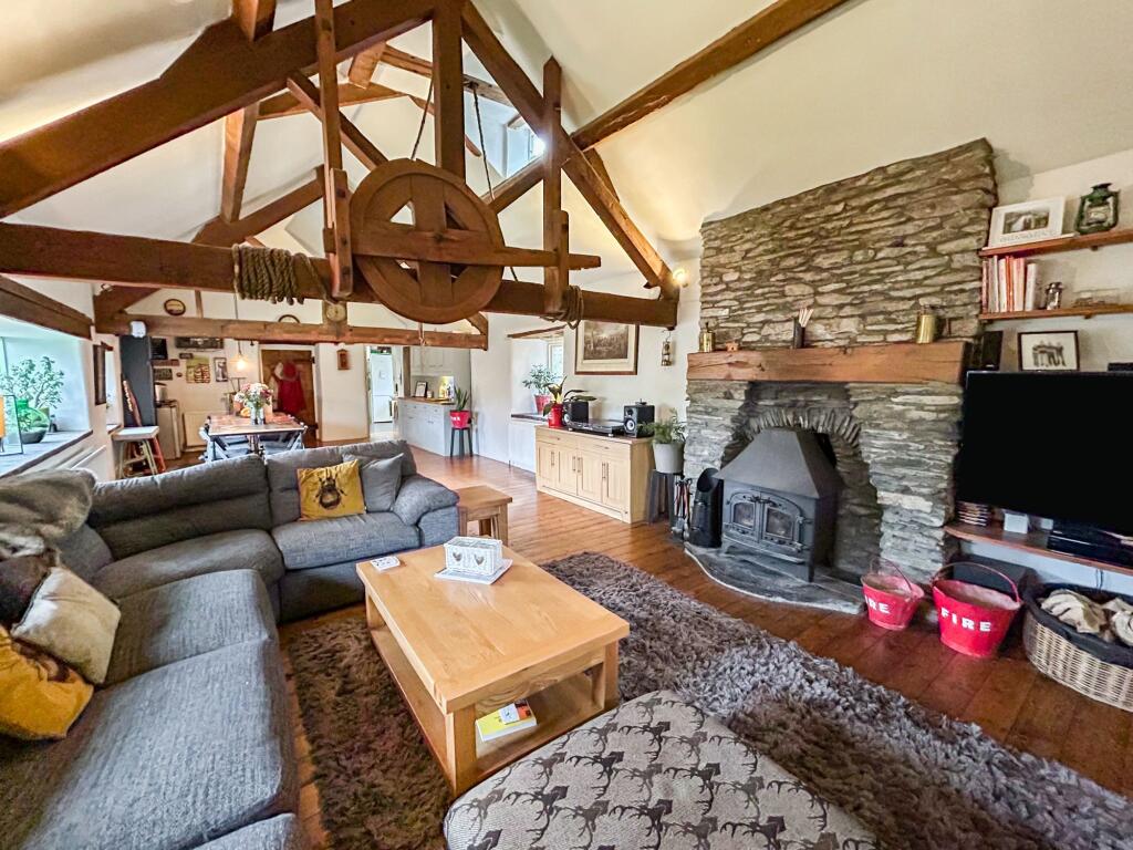 Melin Y Bwlch is a distinctive Grade II listed; five-bedroom detached property that beautifully combines modern comforts with preserved historical features. The original mill wheels remain visible from the workshop, and the drying stones have been repurposed as unique windowsills.