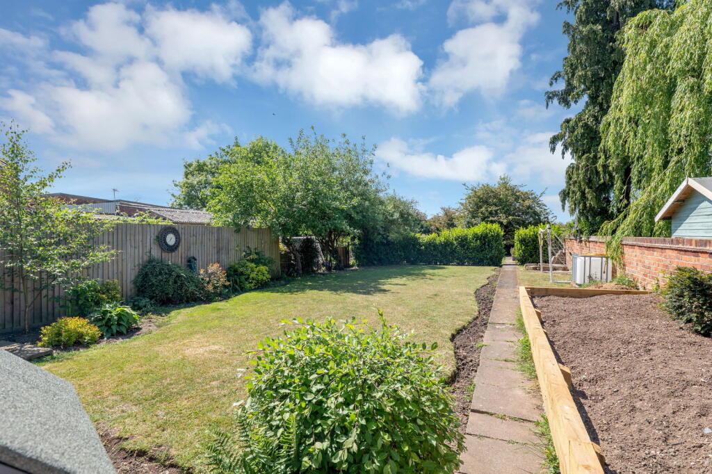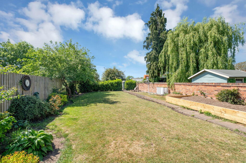 Land: The property includes a sizable garden, offering ample outdoor space. The garden is well-maintained and features various landscaping elements, including a patio area, lawn, and planting beds. The presence of a shed provides additional storage. The size and condition of the garden are significant positive attributes.
