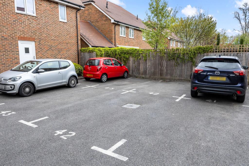 The property includes allocated parking. While there is a small area of communal garden visible in the photos, it is not extensive.