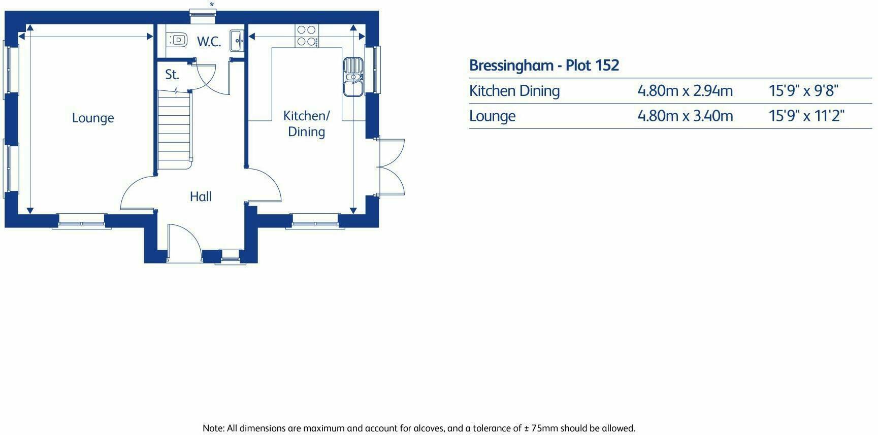 The Bressingham B features to the ground floor a modern open plan kitchen/dining area, a separate lounge and also a downstairs WC. To the first floor there are 3 bedrooms with an en-suite to master bedroom, the family bathroom completes the home. Located in a popular residential area.