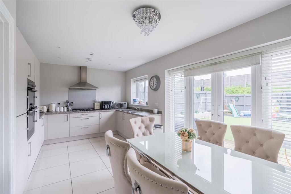 Located within the esteemed ’Castle Green’ development, this pristine home is thoughtfully designed for modern family living. The entrance hall includes a convenient cloakroom, leading to a relaxing lounge area, bathed in natural light. The contemporary kitchen/diner, with patio doors to the rear...