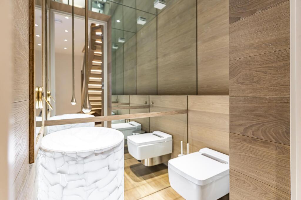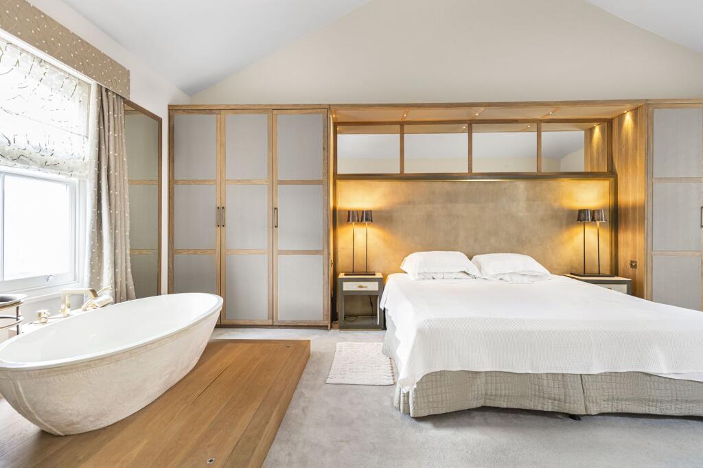 Design led 4/5 bed, 4.5 bath semi-detached house in the Ten Acre Estate, Chelsea, SW10. Stunning interiors, west-facing garden, sauna, Jacuzzi, high-end appliances, Kensington & Chelsea parking permit