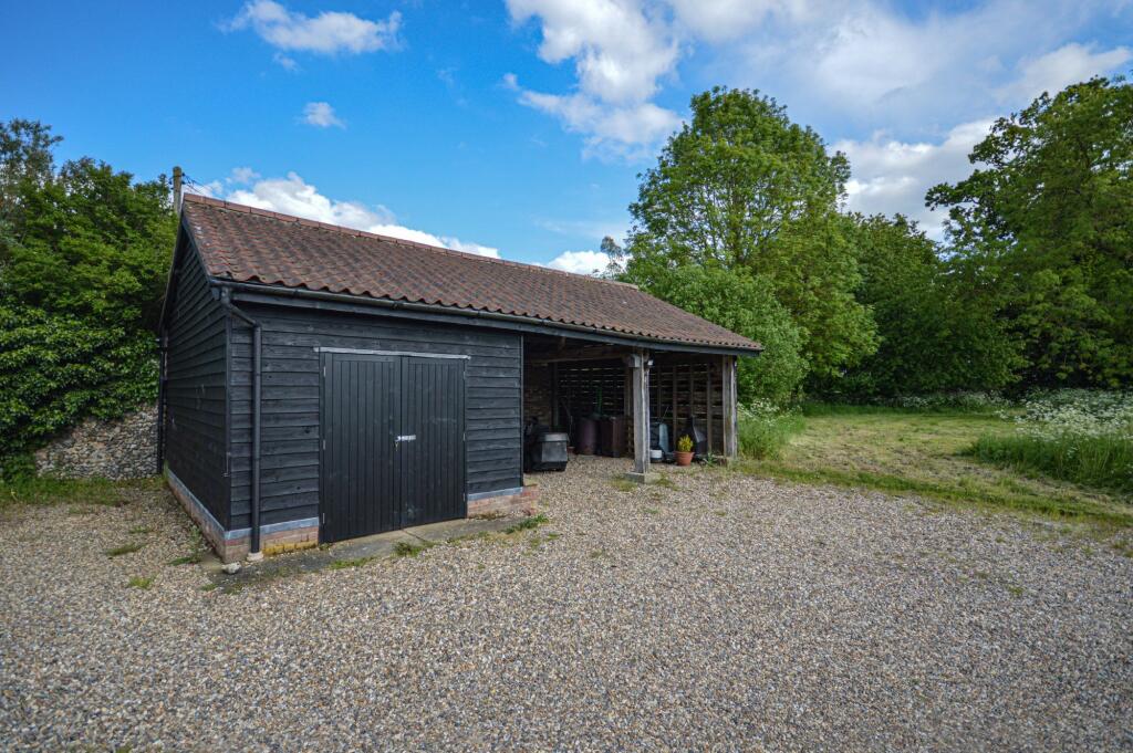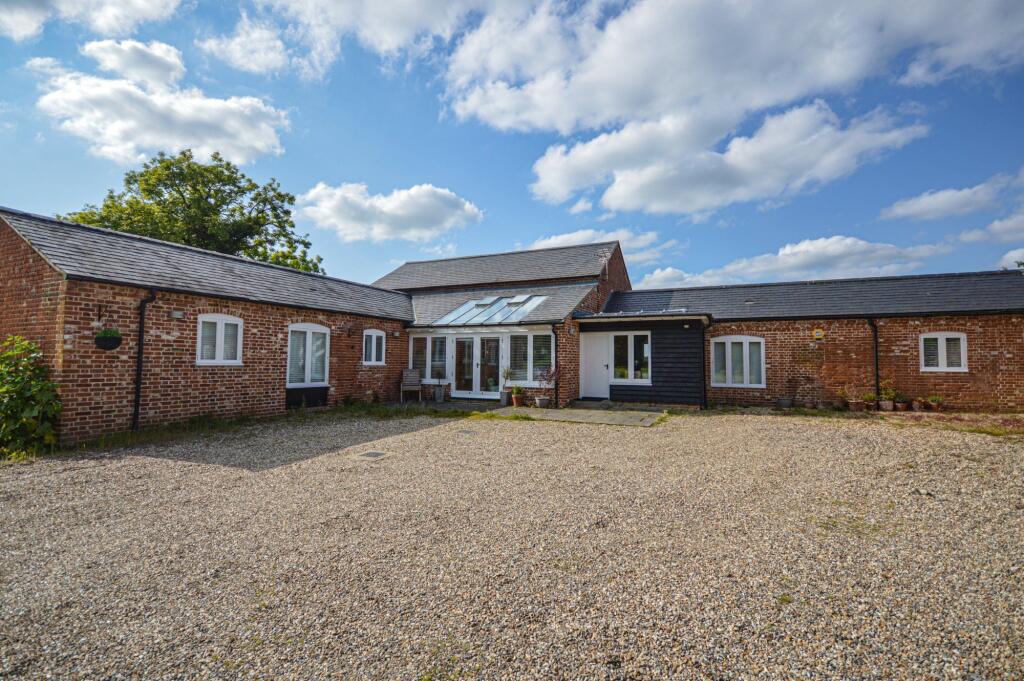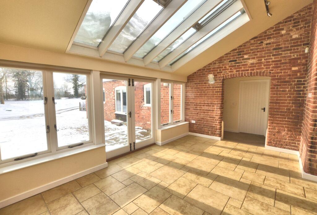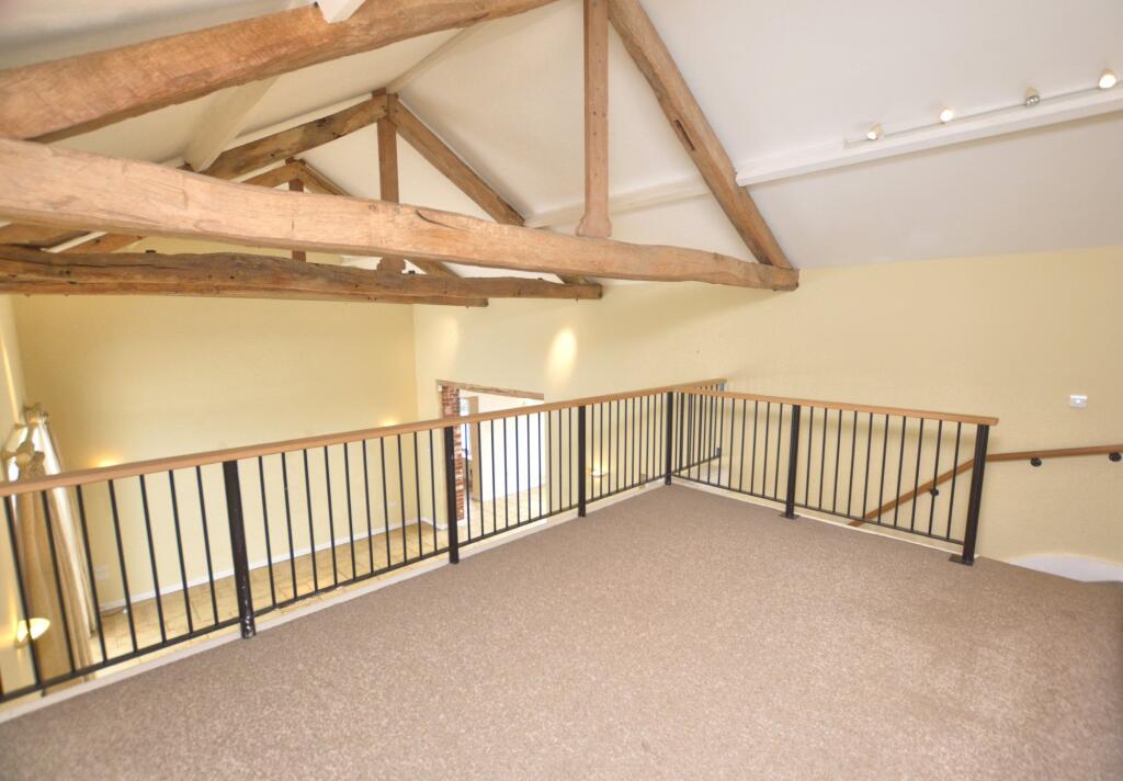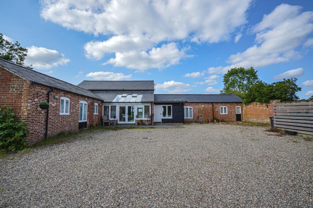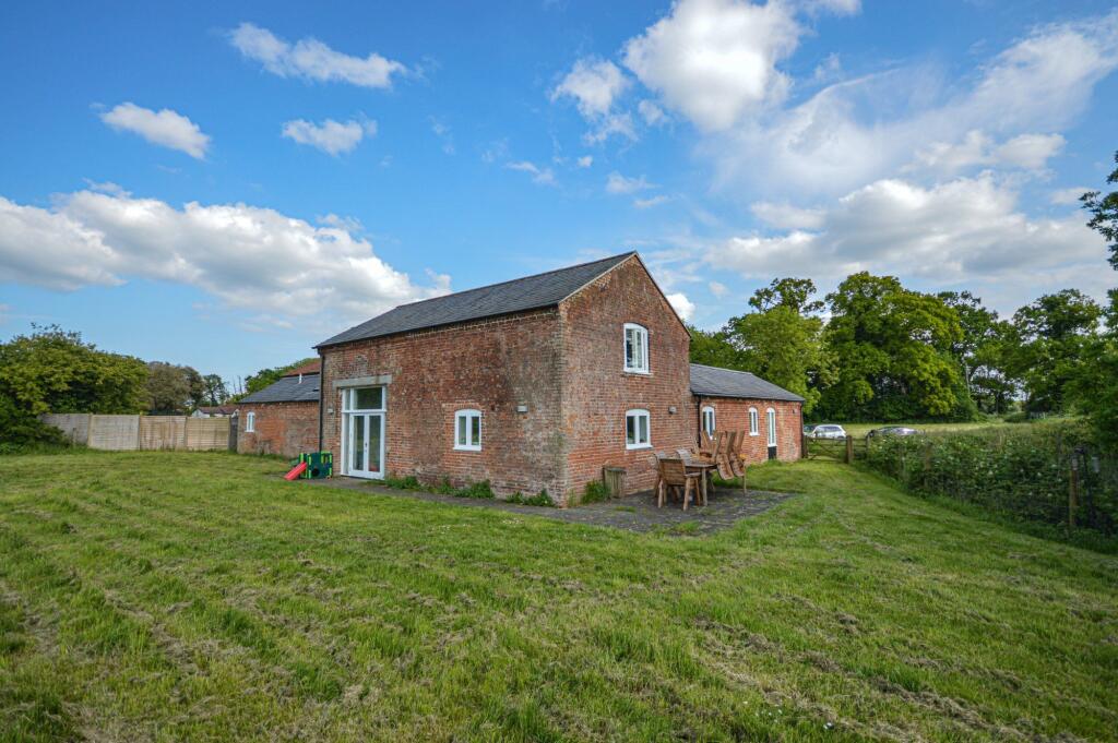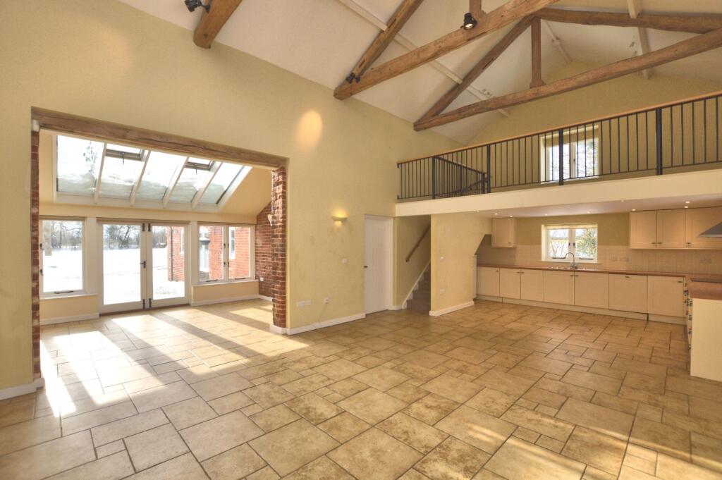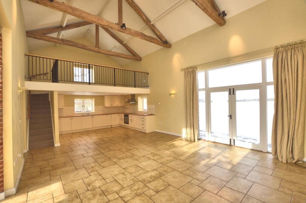 A fine detached barn conversion in a popular location, enjoying beautiful countryside views. Offering three bedrooms, an en-suite, family bathroom, open-plan living accommodation, utility room and mezzanine. Set within large gardens with a private gated entrance and double car port. Available now.