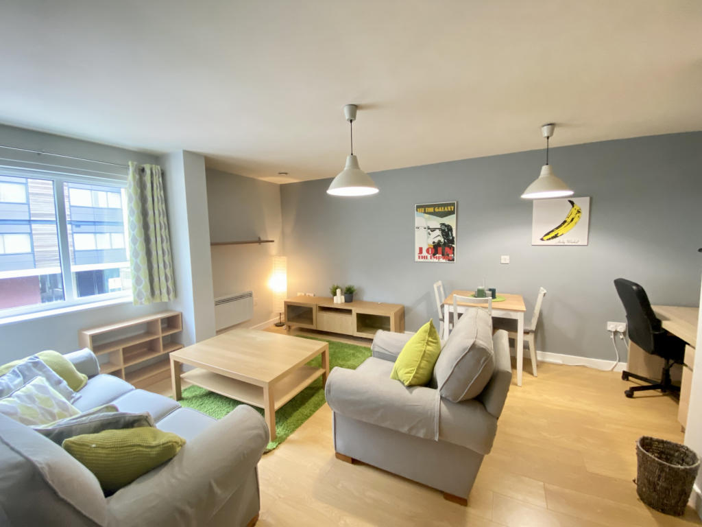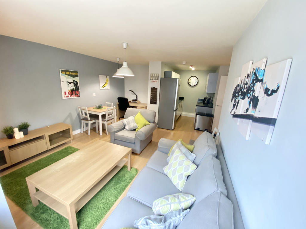 **WATCH THE WALK THRU VIDEO** This is an immaculately presented modern apartment with Two double bedrooms, open-plan lounge- Kitchen and an allocated parking space. . Set back on Salford Quays the 1st floor apartment enjoys plenty of light with large windows.However the windows DONOT open.