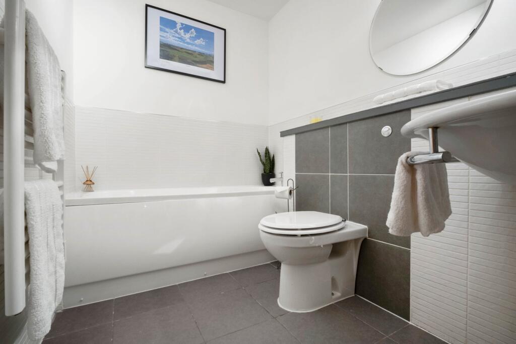 This property is a modern one bedroom apartment located in Prestwick, South Ayrshire. Prestwick is a popular coastal town with good transport links, including close proximity to Prestwick International Airport and regular train services to Ayr and Glasgow. The apartment itself appears to be in excellent condition, with modern fixtures and fittings throughout. While the provided information does not specify the exact plot size, the images suggest a small, possibly communal, outdoor space. The list price of £139,000 is significantly lower than the average house price in the area (£607,198), but this is likely due to the property being an apartment rather than a house. Compared to similar nearby apartments, the price seems reasonable, although more information on the size of the apartment would be needed to make a definitive judgment. The property benefits from being close to the train station and airport, making it an attractive option for commuters and travellers.