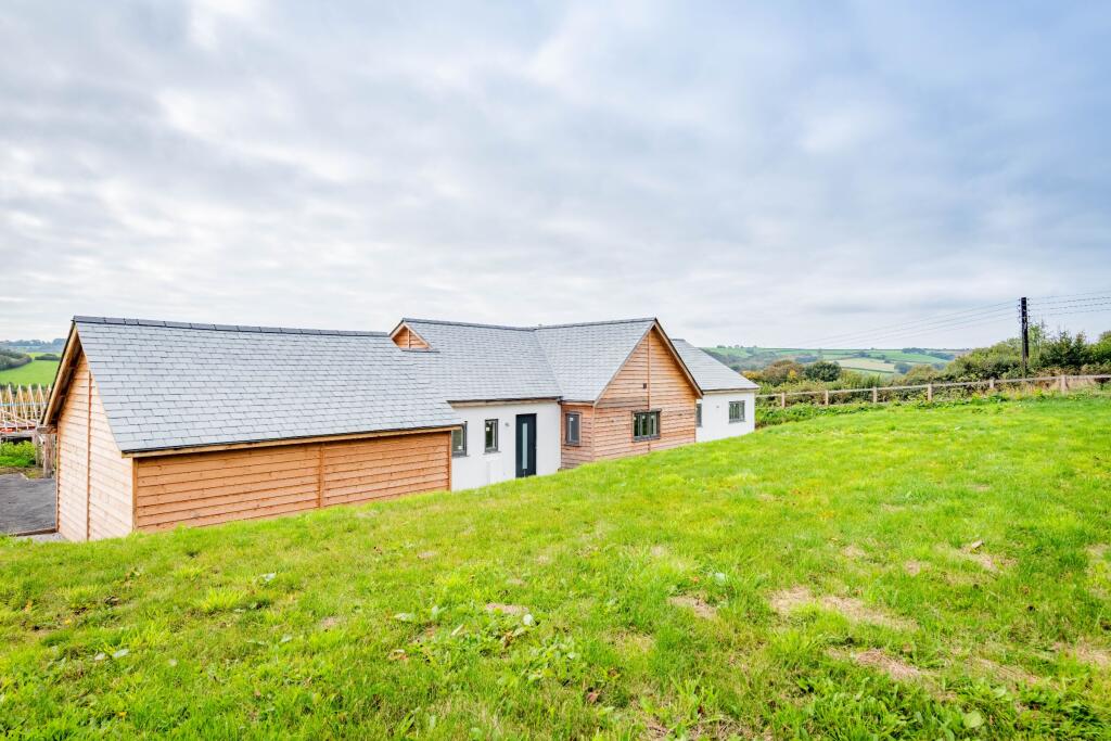 Oaklands is a modern bungalow located in the serene countryside of North Devon. The property features four bedrooms and three bathrooms, making it suitable for families or those seeking a spacious rural retreat. The interior is mostly finished to a high standard, but some areas, particularly the bathrooms, require completion. The large garden and surrounding agricultural land offer plenty of outdoor space and privacy. While the location is rural, it remains conveniently accessible to nearby towns and amenities. The property includes solar panels. The price is reasonable for the area, although the unfinished interior might be a point of negotiation for potential buyers.