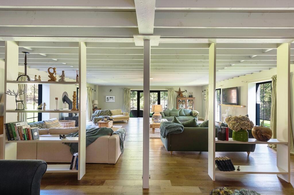 A beautifully crafted 6,500sq-ft contemporary home in private mature gardens extending to 0.6-acre, set back within this well-regarded village close to Bury St Edmunds.