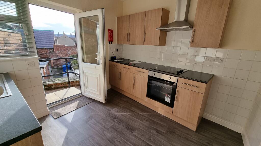 A two bedroomed unfurnished multi level apartment in the popular seaside town of Filey with small patio area.